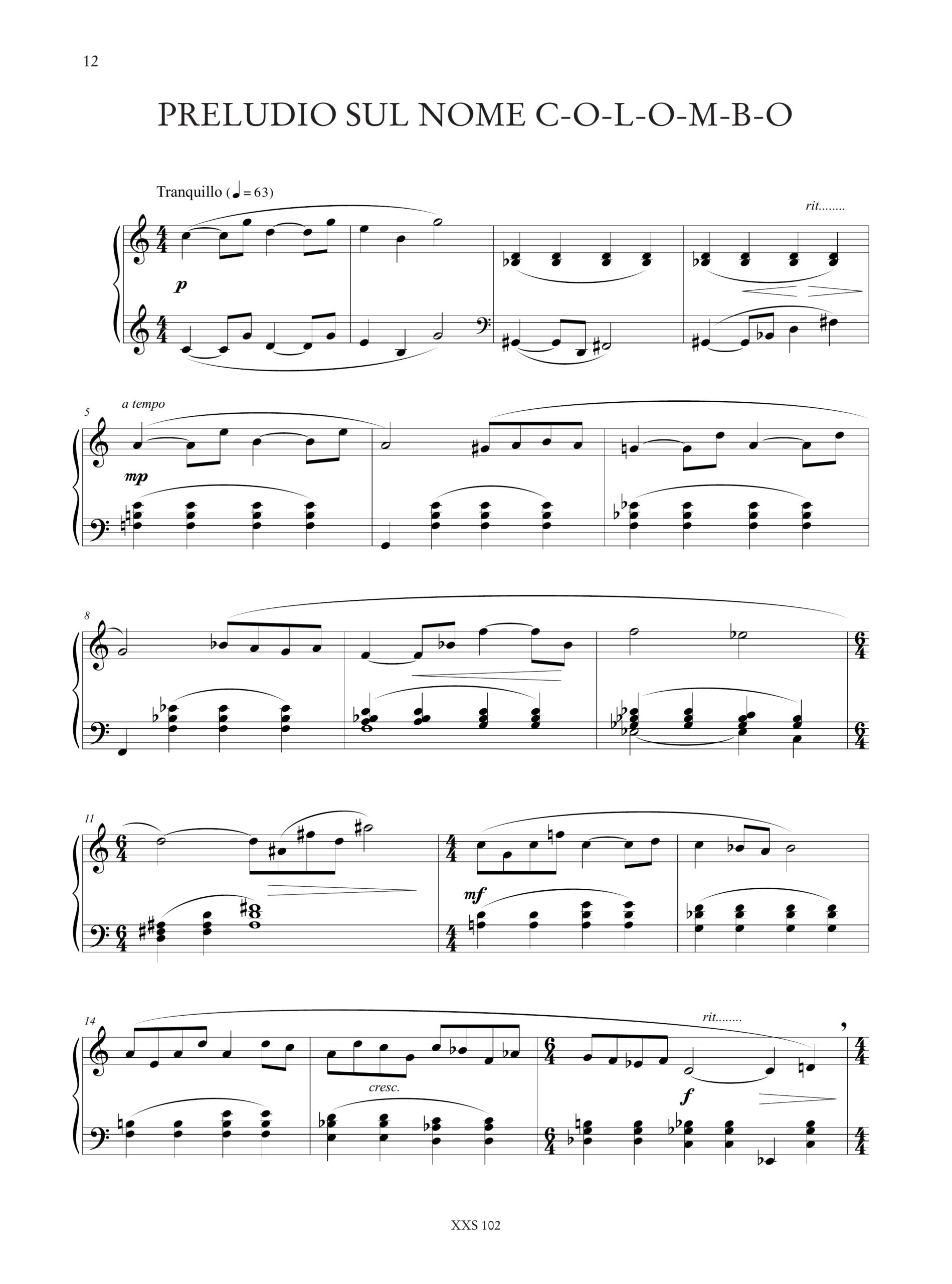 Contenuto e Descrizione: Roburent (Marcia); Berceuse; 2 Contrasti; Preludio sul nome C-O-L-O-M-B-O