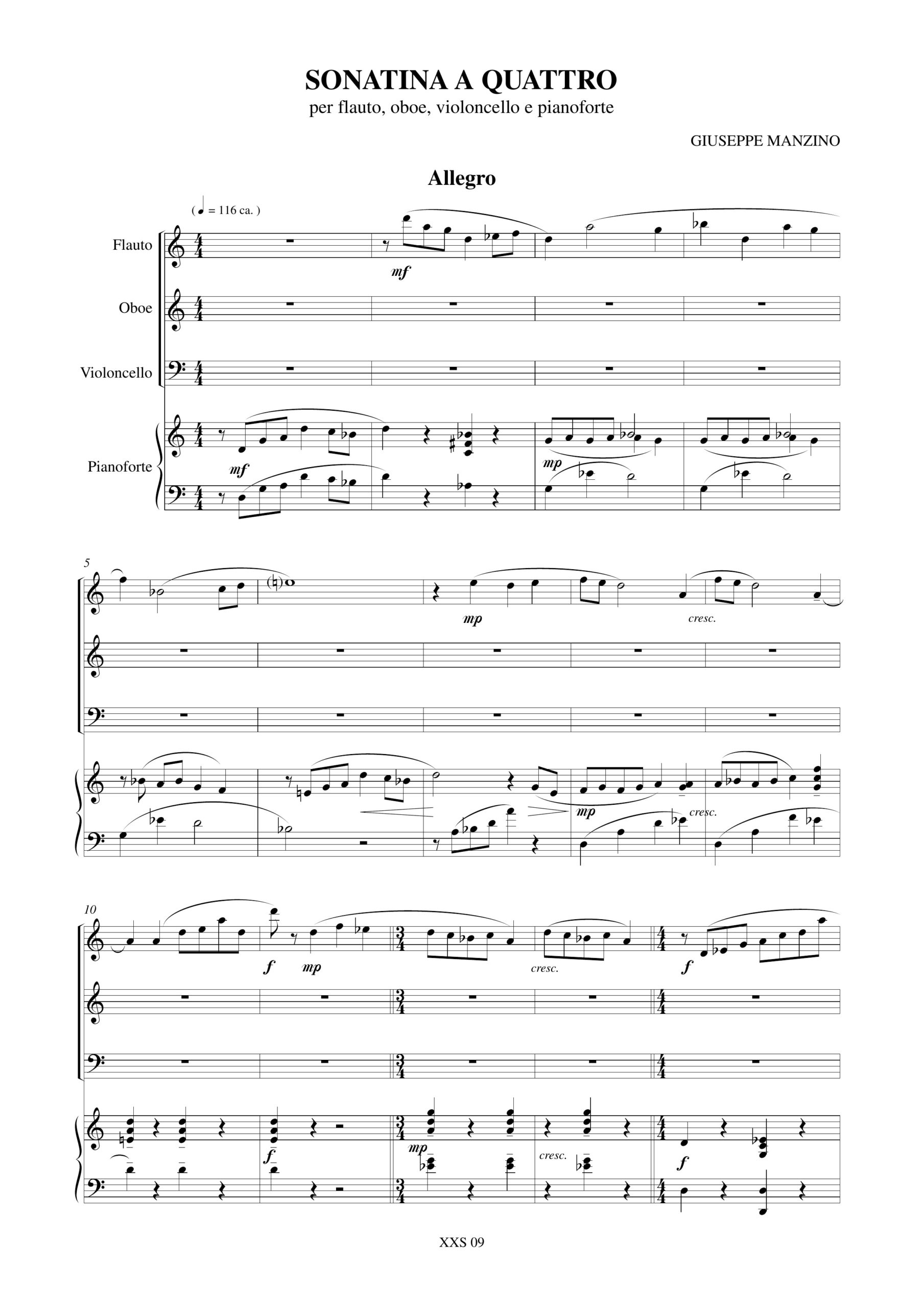 Manzino, Giuseppe: Sonatina a 4 per Flauto, Oboe, Violoncello e Pianoforte