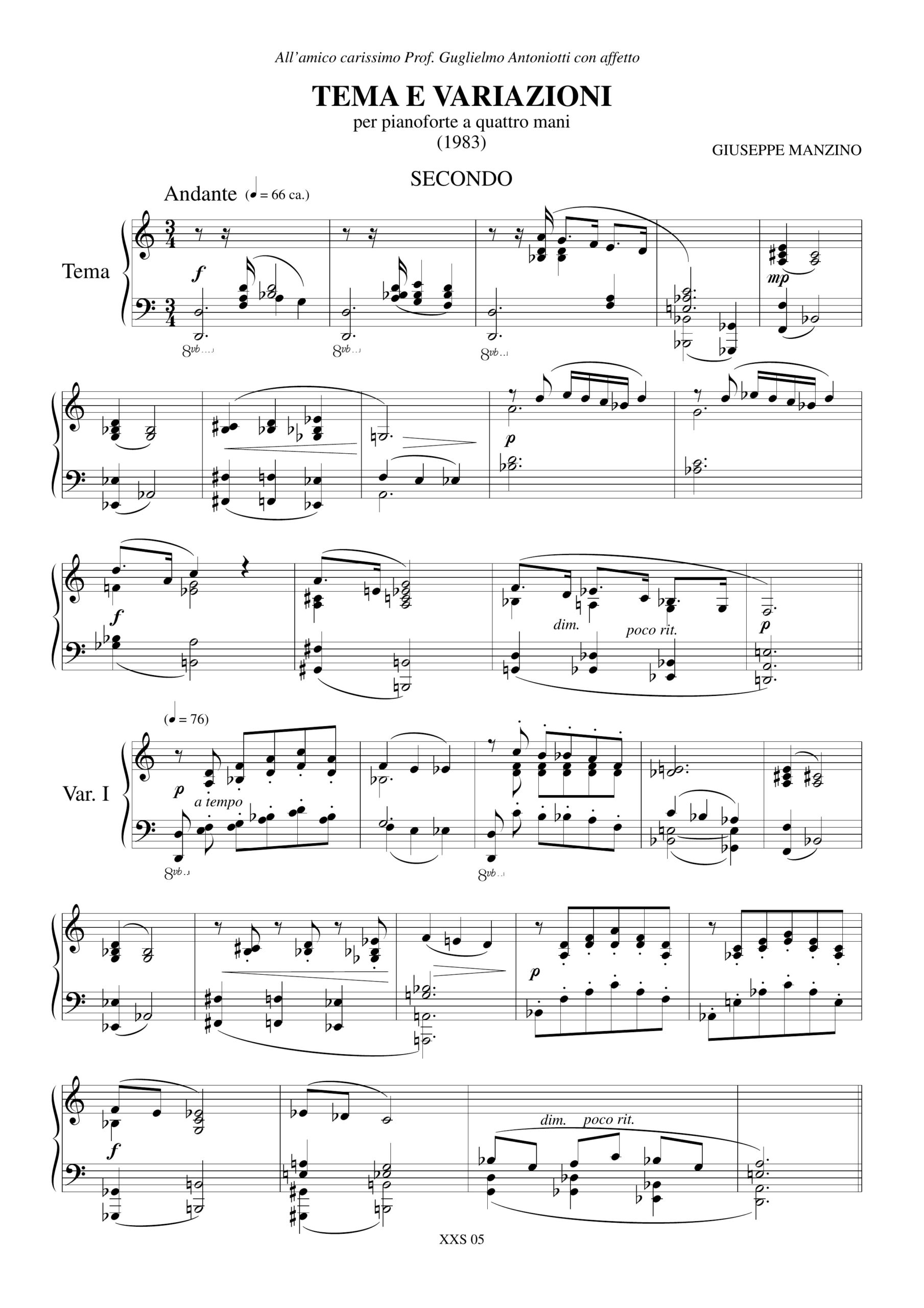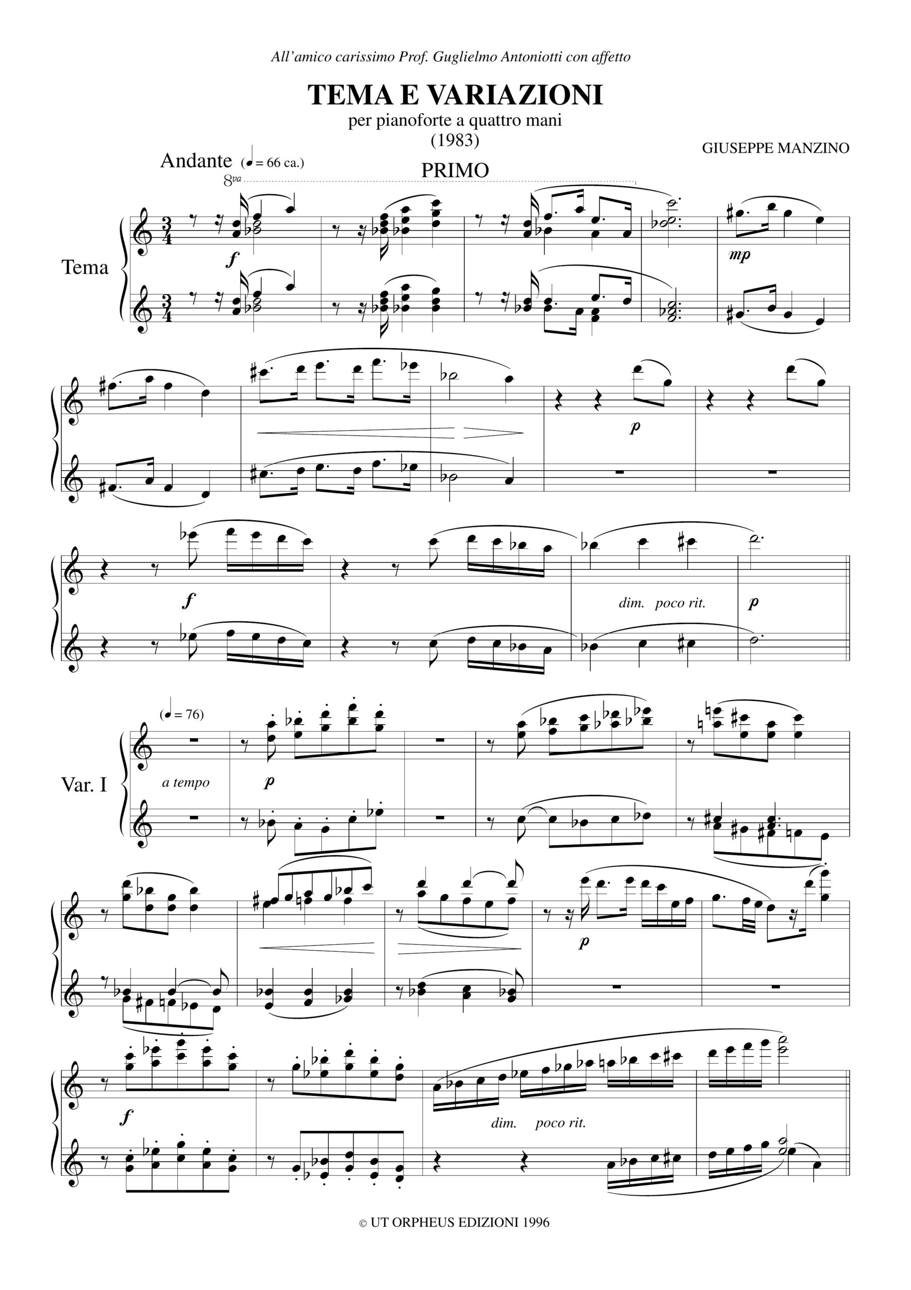 Manzino, Giuseppe: Tema e Variazioni per Pianoforte a 4 mani (1983)