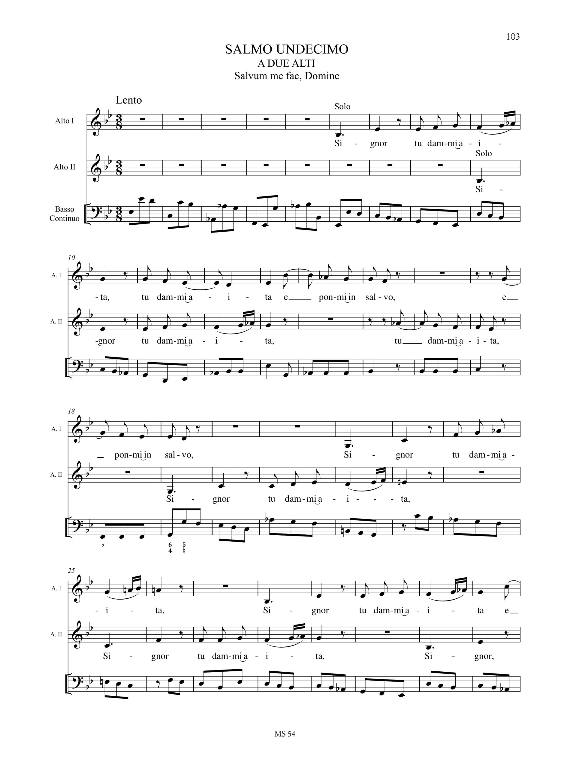 Contenuto e Descrizione: Salmo IX (Confitebor tibi Domine); Salmo X (In Domino Confido); Salmo XI (Salvum me fac, Domine); Salmo XII (Unsquequò Domine oblivisceris); Salmo XIII (Dixit insipiens in corde suo); Salmo XIV (Domine, quis habitabit)