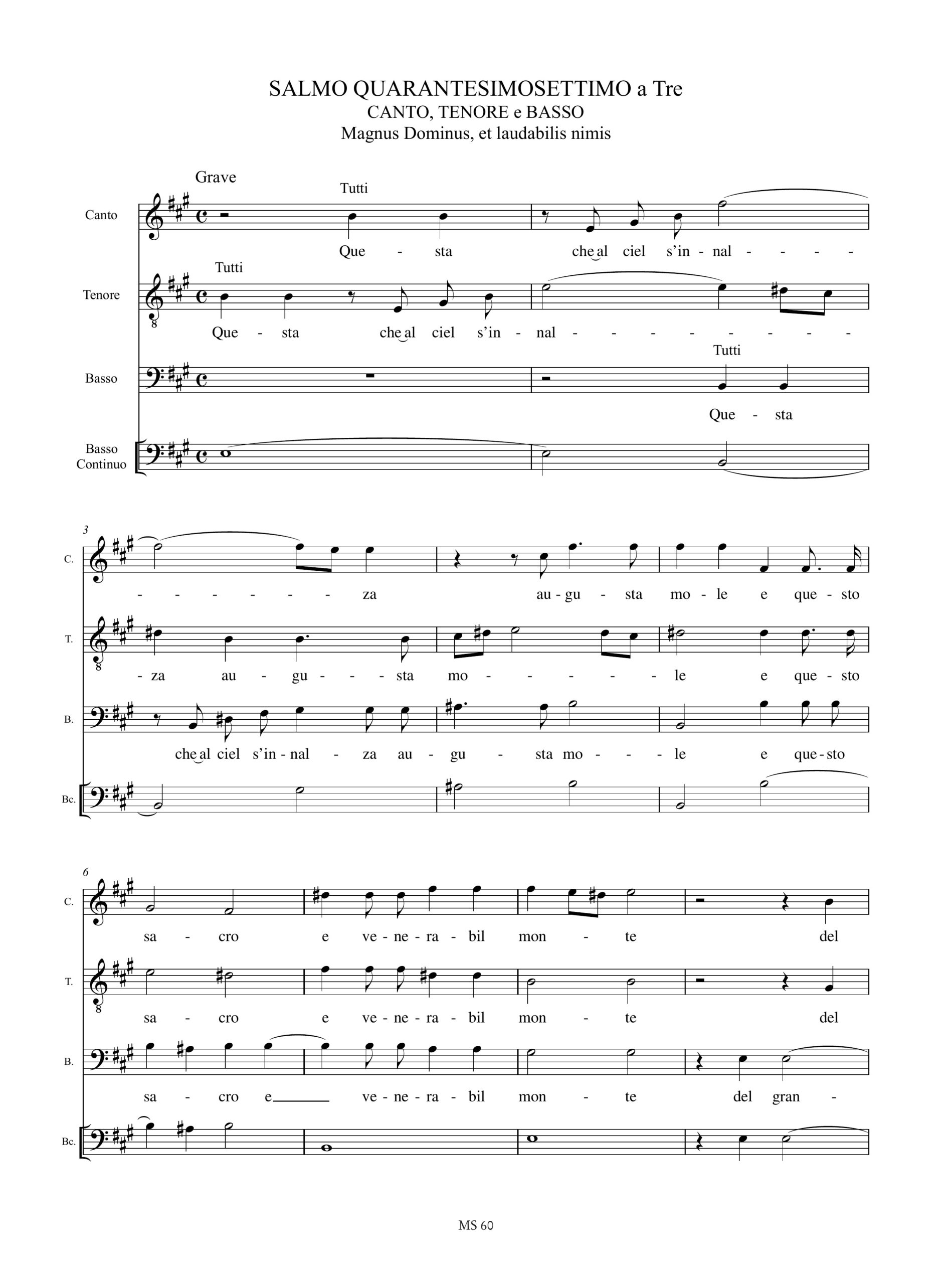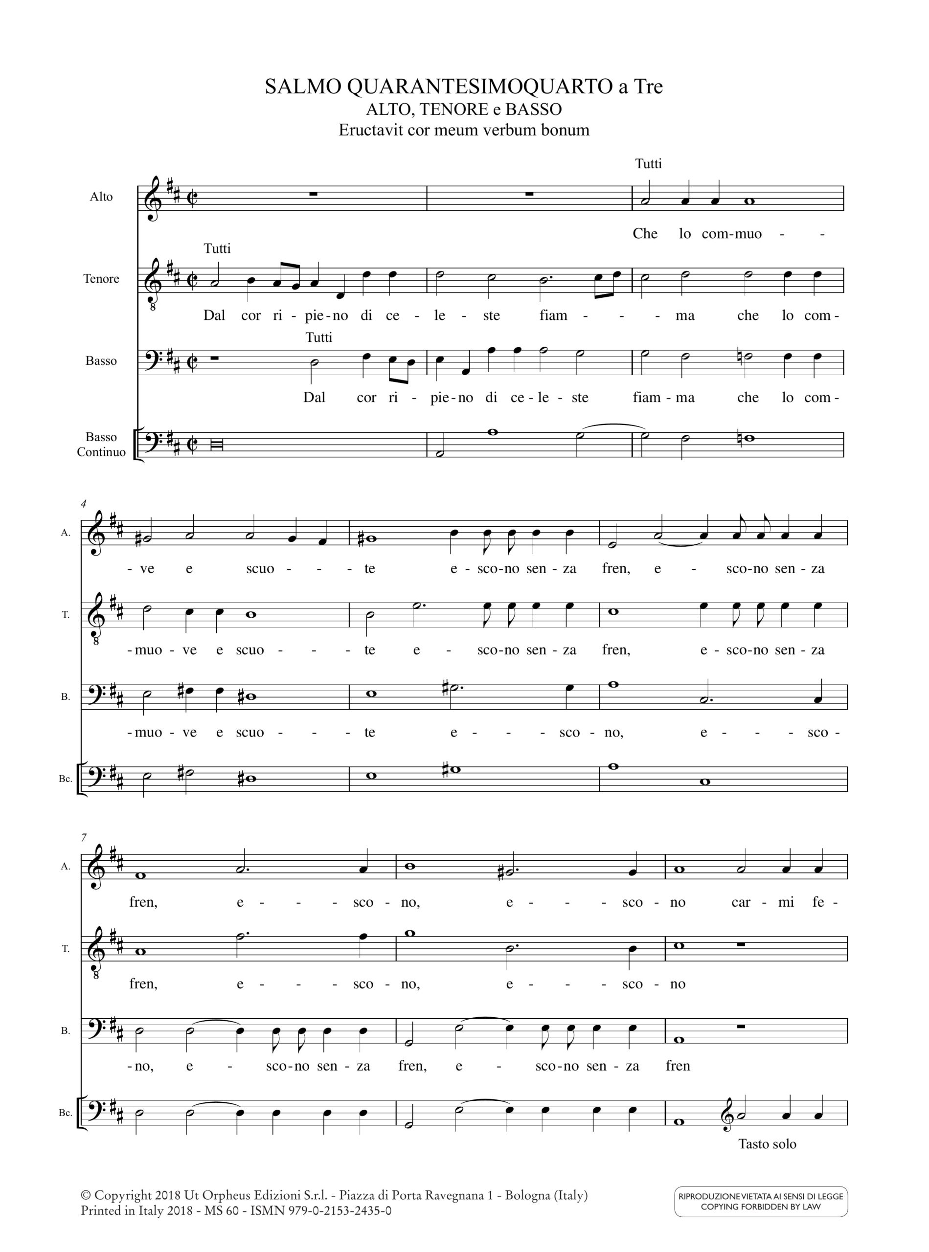 Contenuto e Descrizione: Salmo XLIV (Eructavit cor meum verbum bonum); Salmo XLV (Deus noster refugium et virtus); Salmo XLVI (Omnes Gentes plaudite manibus); Salmo XLVII (Magnus Dominus, et laudabilis nimis); Salmo XLVIII (Audite haec omnes Gentes); Salmo XLIX (Deua Deorum Dominus); Salmo L (Miserere mei Deus); Canon triplex sex vocibus infinitus sub Diapente