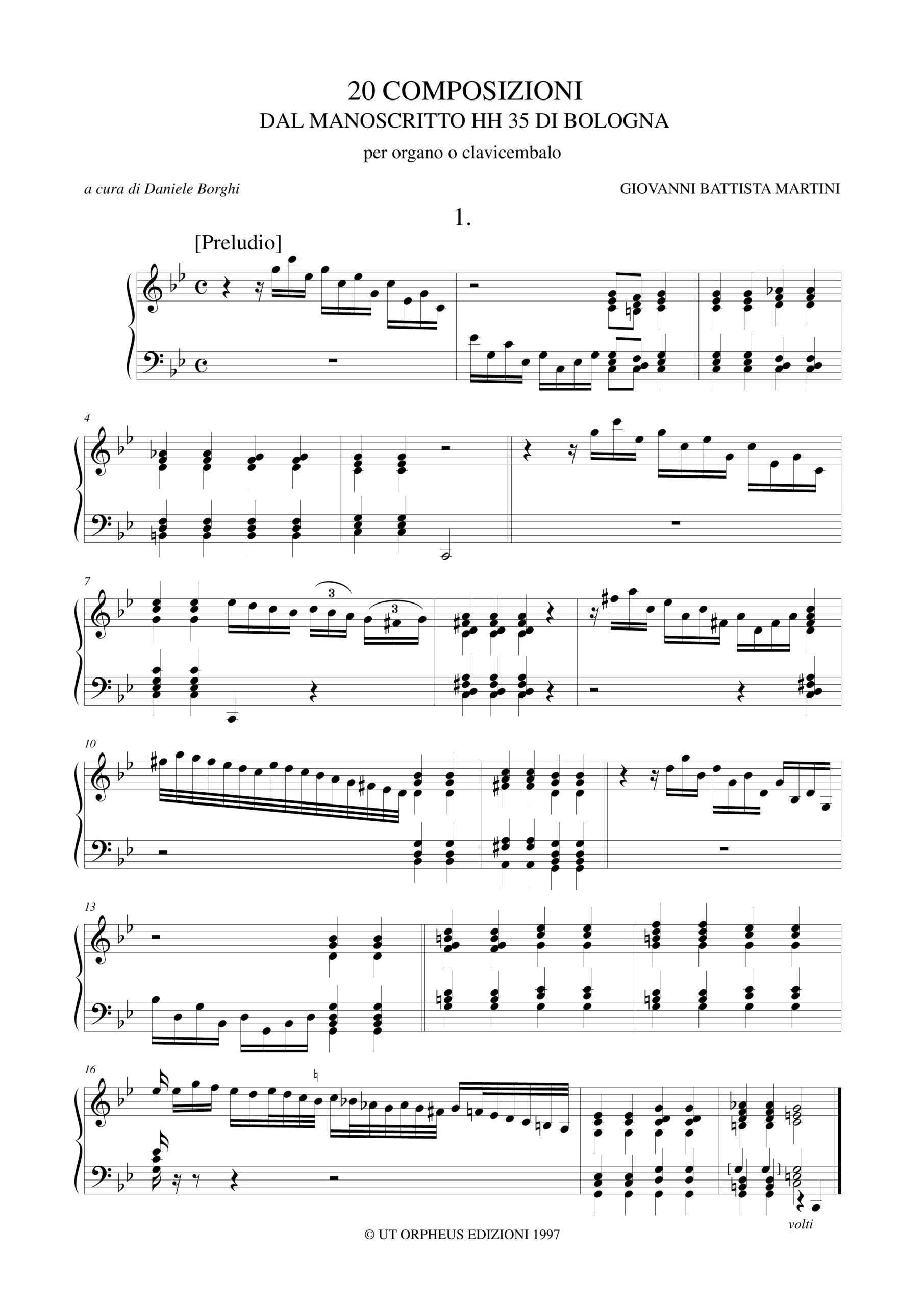Martini, Giovanni Battista: 20 Composizioni dal ms. HH 35 di Bologna per Organo o Clavicembalo