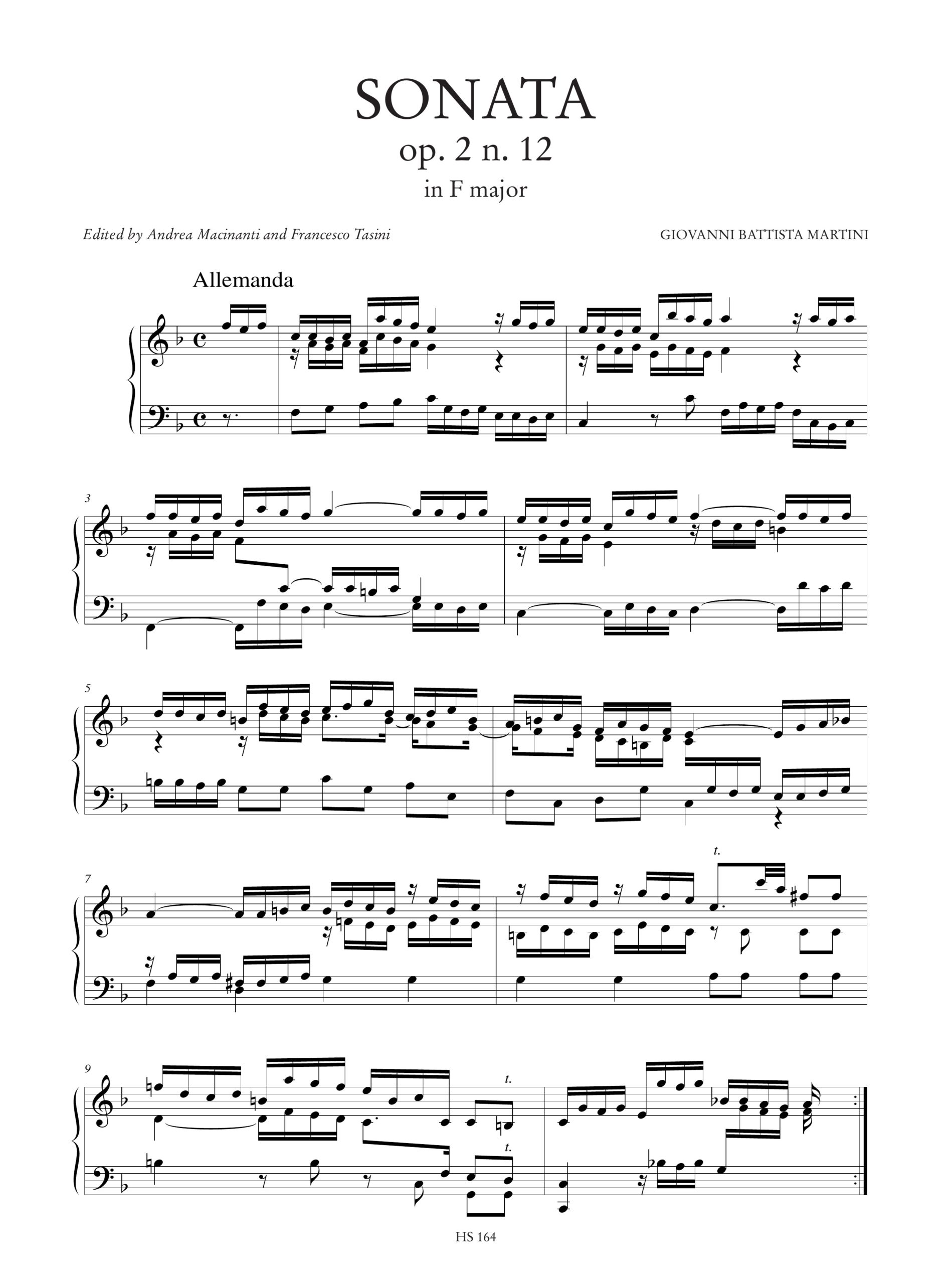 Martini, Giovanni Battista: Sonata Op. 2 N. 12 in Fa maggiore per Organo o Clavicembalo