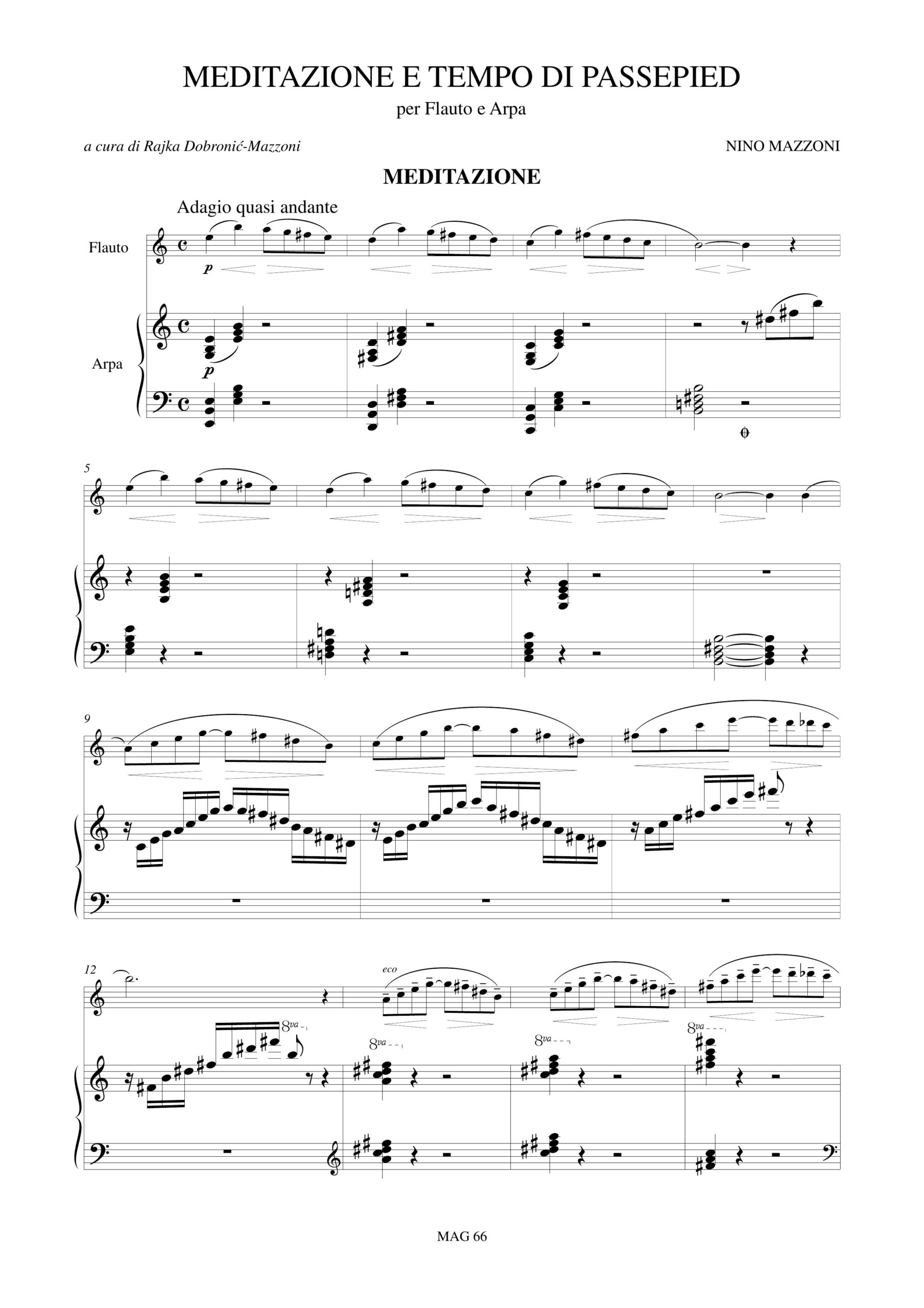 Mazzoni, Nino: Meditazione e Tempo di Passepied per Flauto e Arpa (1976)
