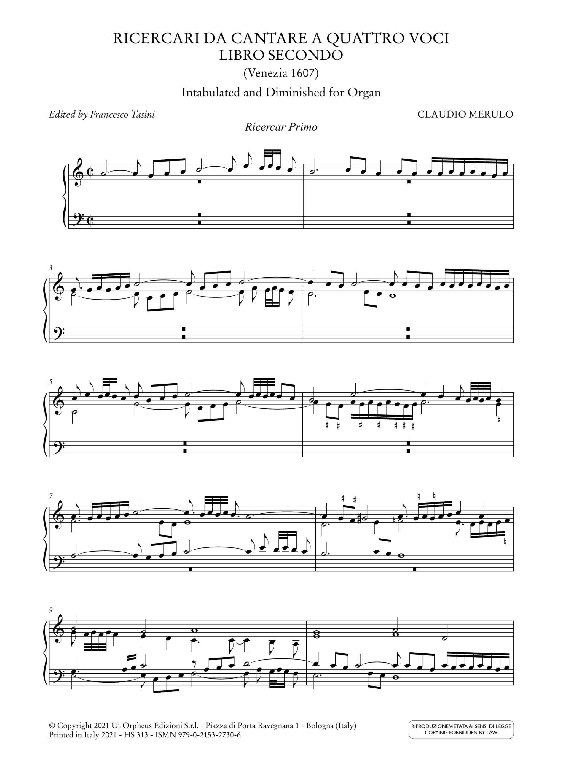 Merulo, Claudio: Ricercari da cantare a quattro voci. Libro Secondo (Venezia 1607) intavolato e diminuito per Organo
