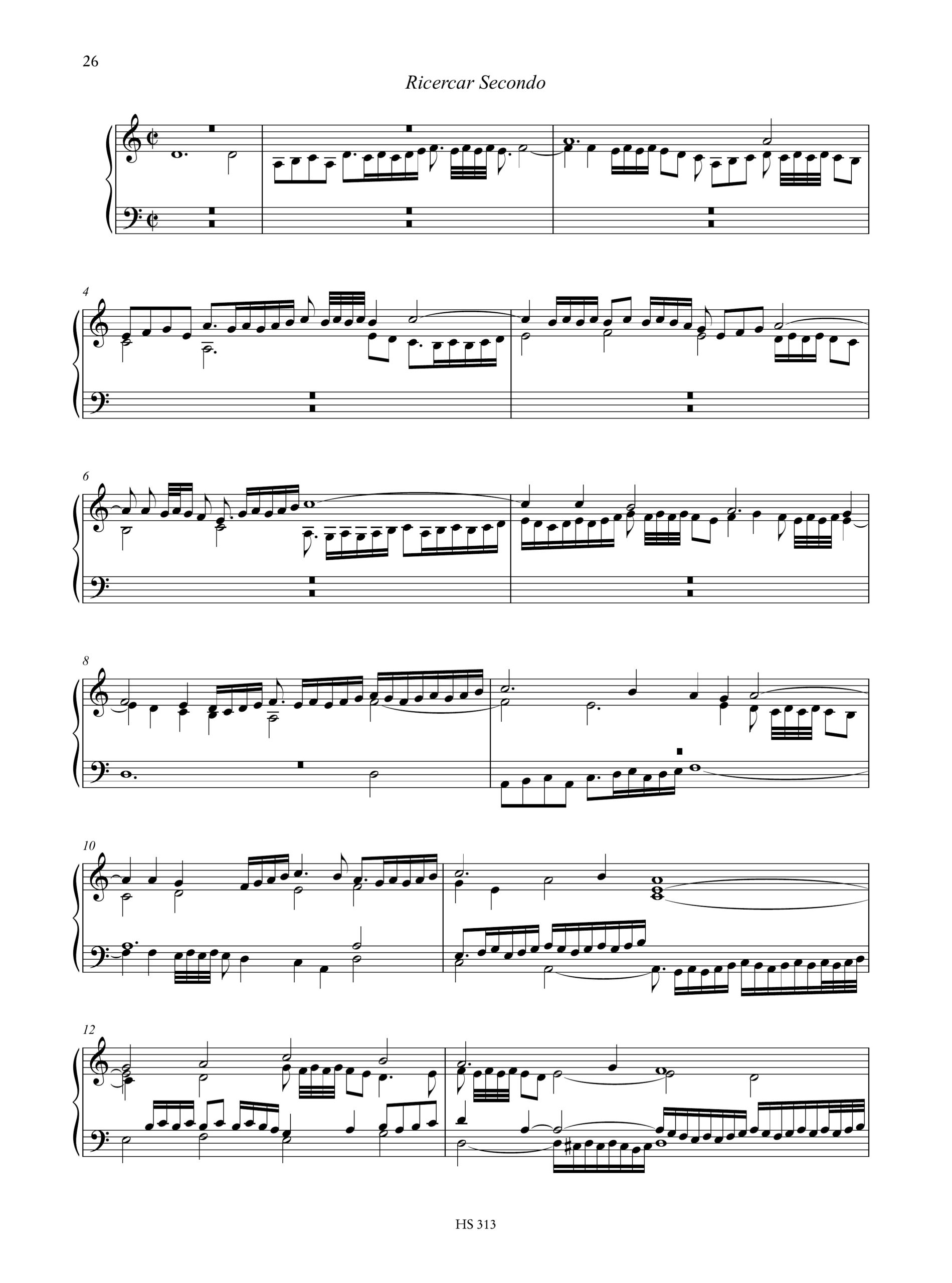 Non mi sono inoltre attenuto strettamente alle ‘regole’ di intavolatura indicate da Diruta ed esemplificate nelle numerose stampe del tempo, limitandomi a indicare la distribuzione delle parti tra le due mani in modo non rigoroso, sempre per evitare di inficiare una chiara lettura del movimento delle voci.