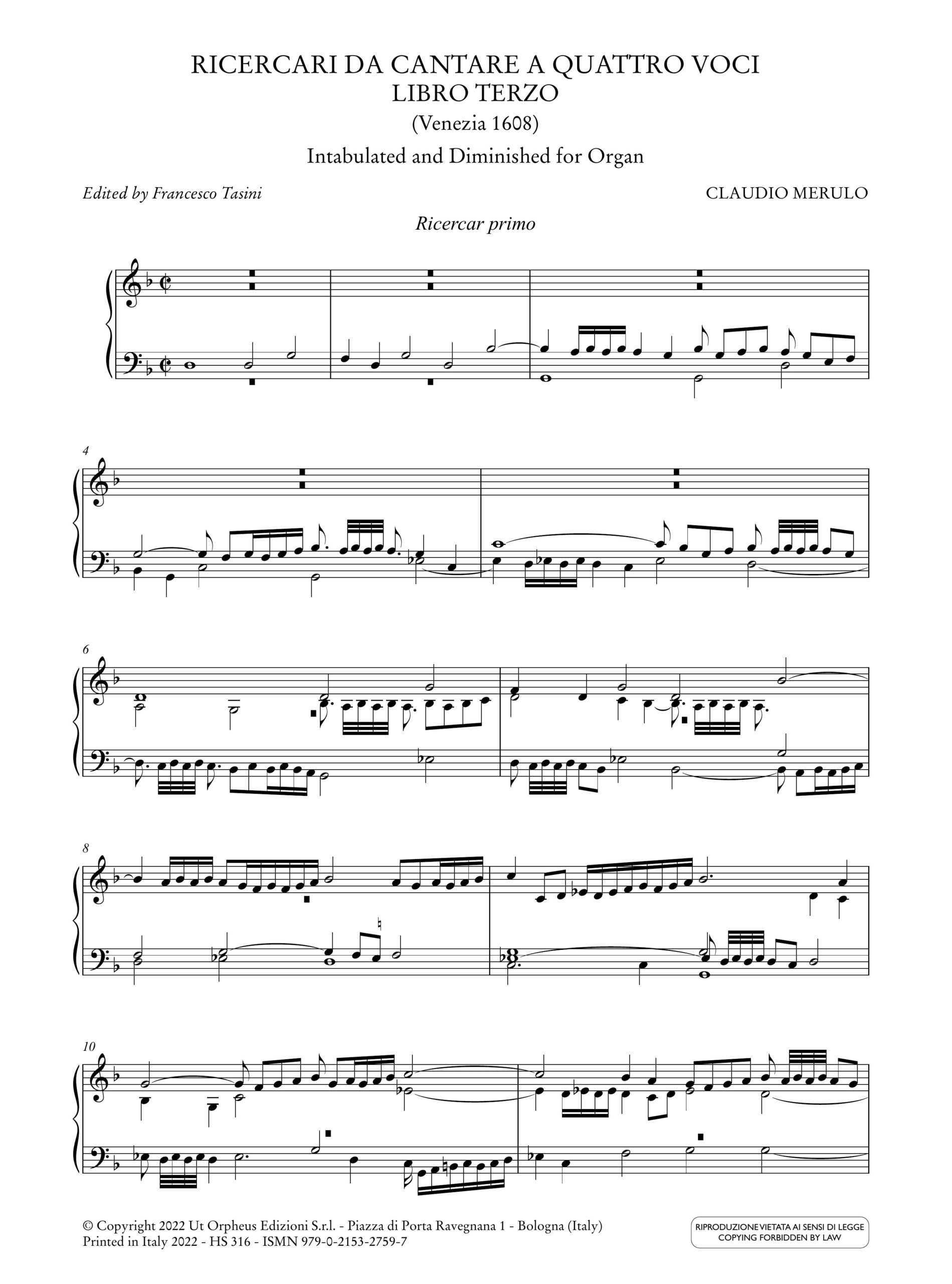 Merulo, Claudio: Ricercari da cantare a quattro voci. Libro Terzo (Venezia 1608) intavolato e diminuito per Organo