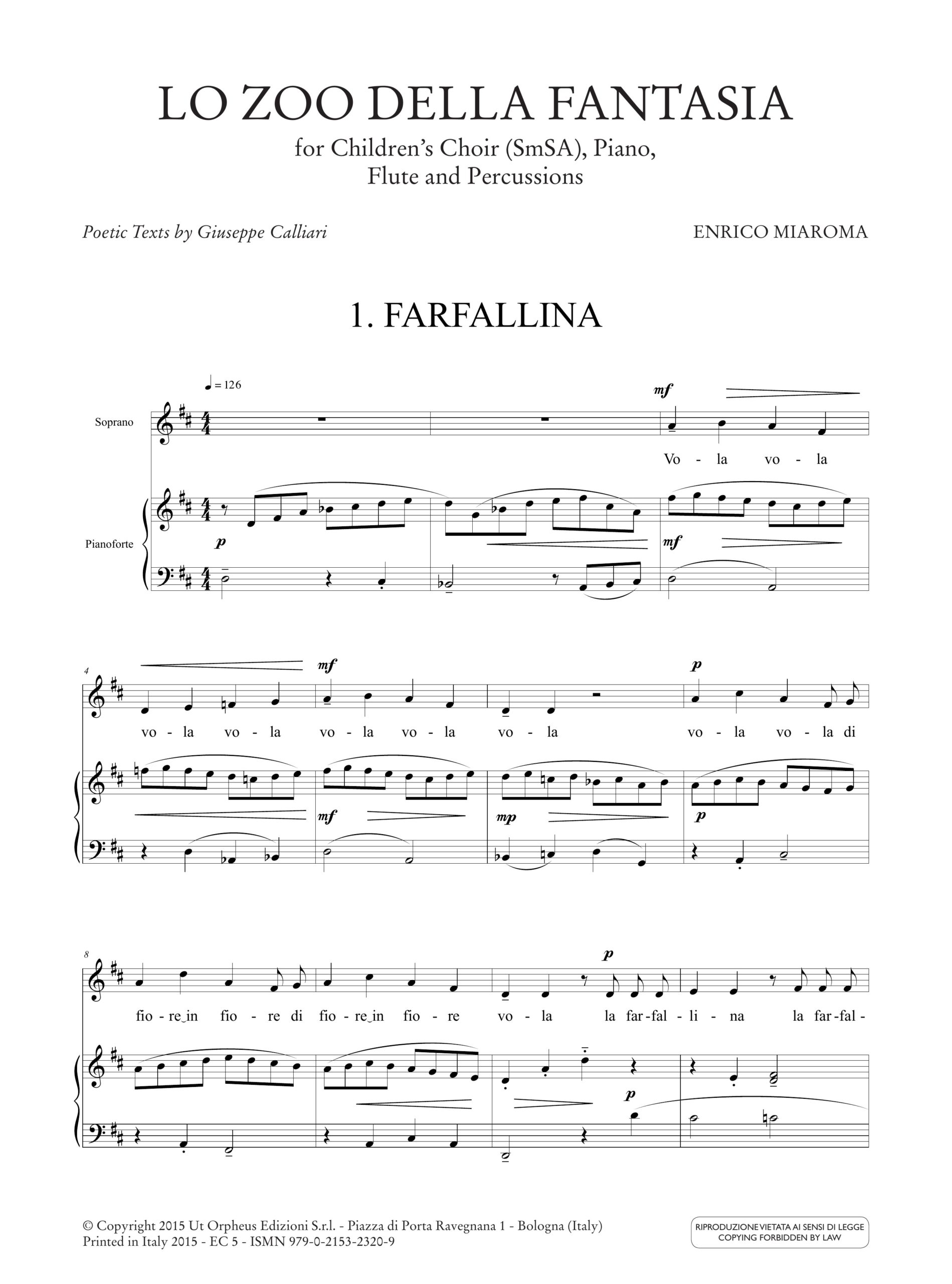 Miaroma, Enrico: Lo Zoo della Fantasia per Coro di Voci Bianche (SMsA), Pianoforte, Flauto e Percussioni