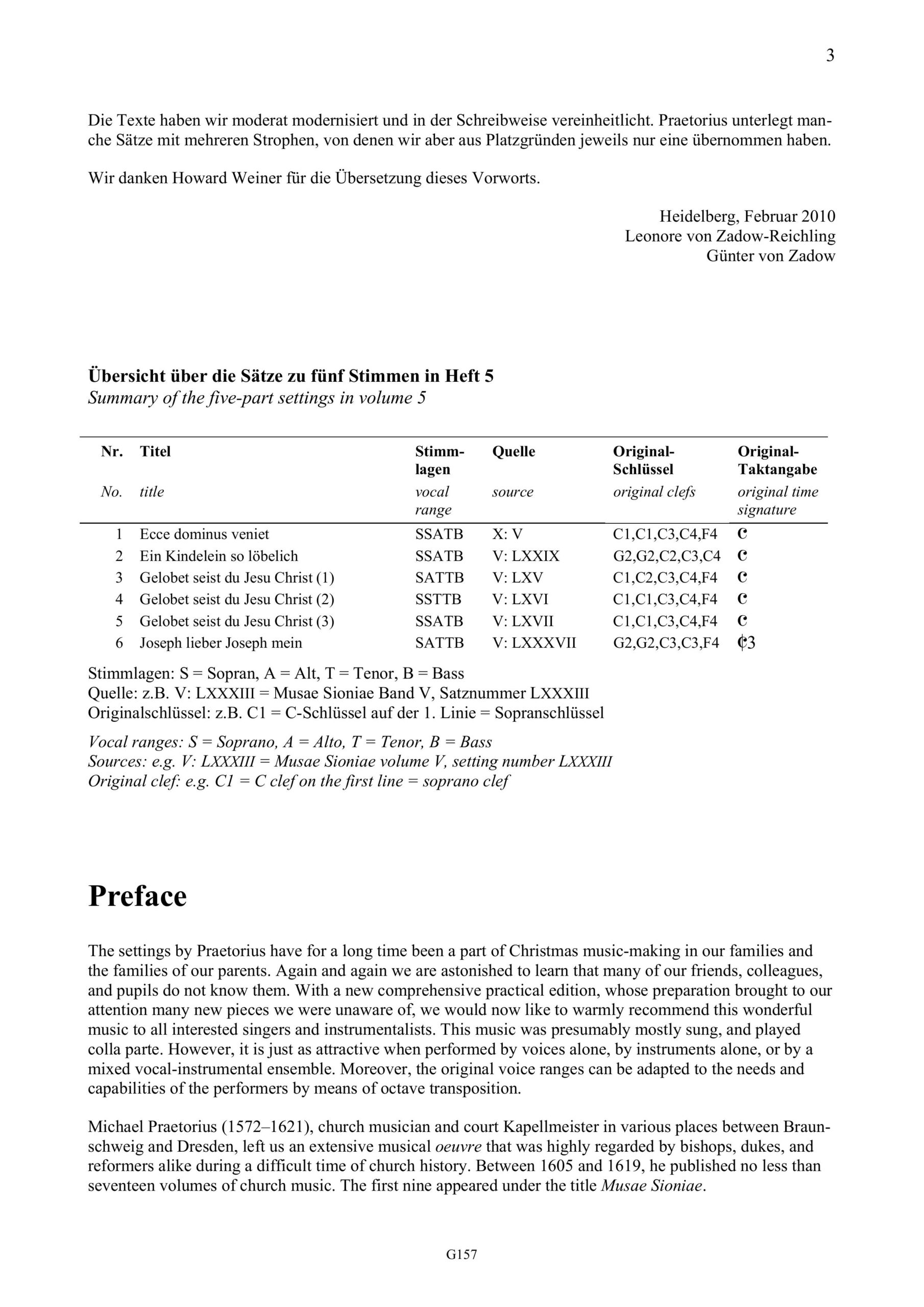 M. Praetorius, Puer natus, Weihnachtssätze, Heft 5 (5-stimmig), 5Cons, Partitur und fünf Stimmen, 88 S., ISMN 979-0-50174-157-1