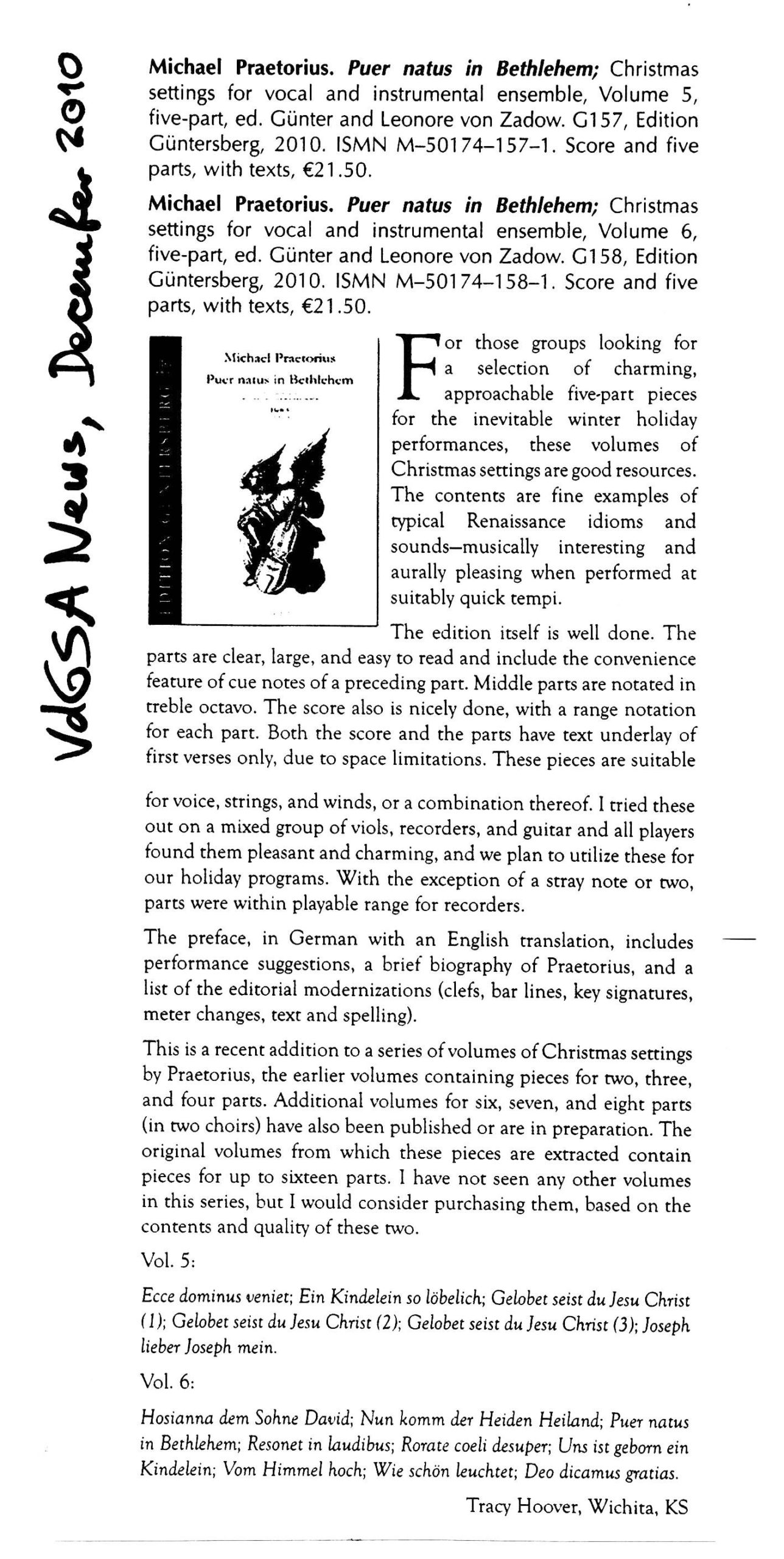 M. Praetorius, Puer natus, Weihnachtssätze, Heft 6 (5-stimmig), 5Cons, Partitur und fünf Stimmen, 88 S., ISMN 979-0-50174-158-8