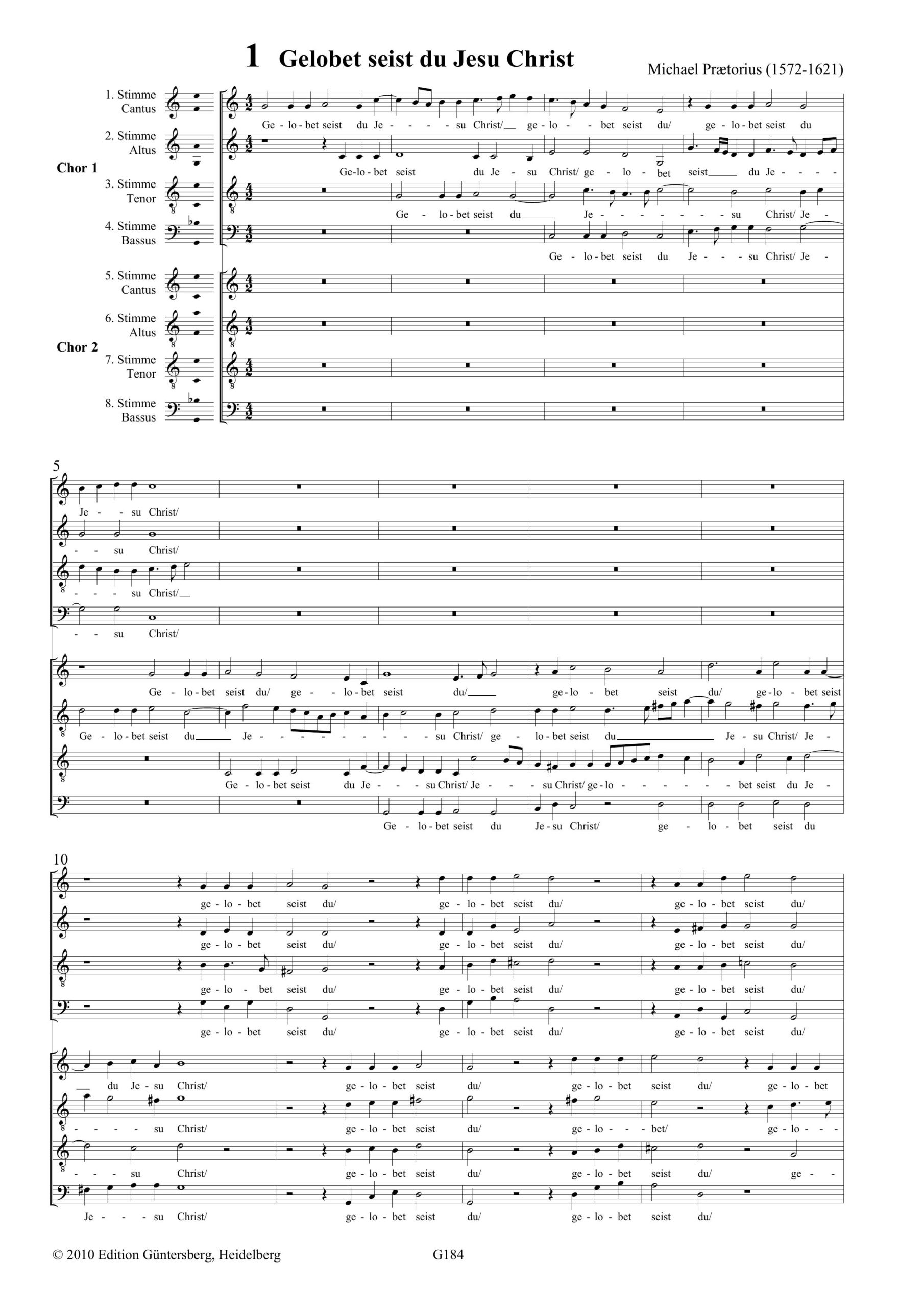 M. Praetorius, Puer natus, Weihnachtssätze, Heft 9 (8-stimmig), Gelobet seist du, In dulci jubilo, 8Cons, Partitur und acht Stimmen, 48 S., ISMN 979-0-50174-184-7