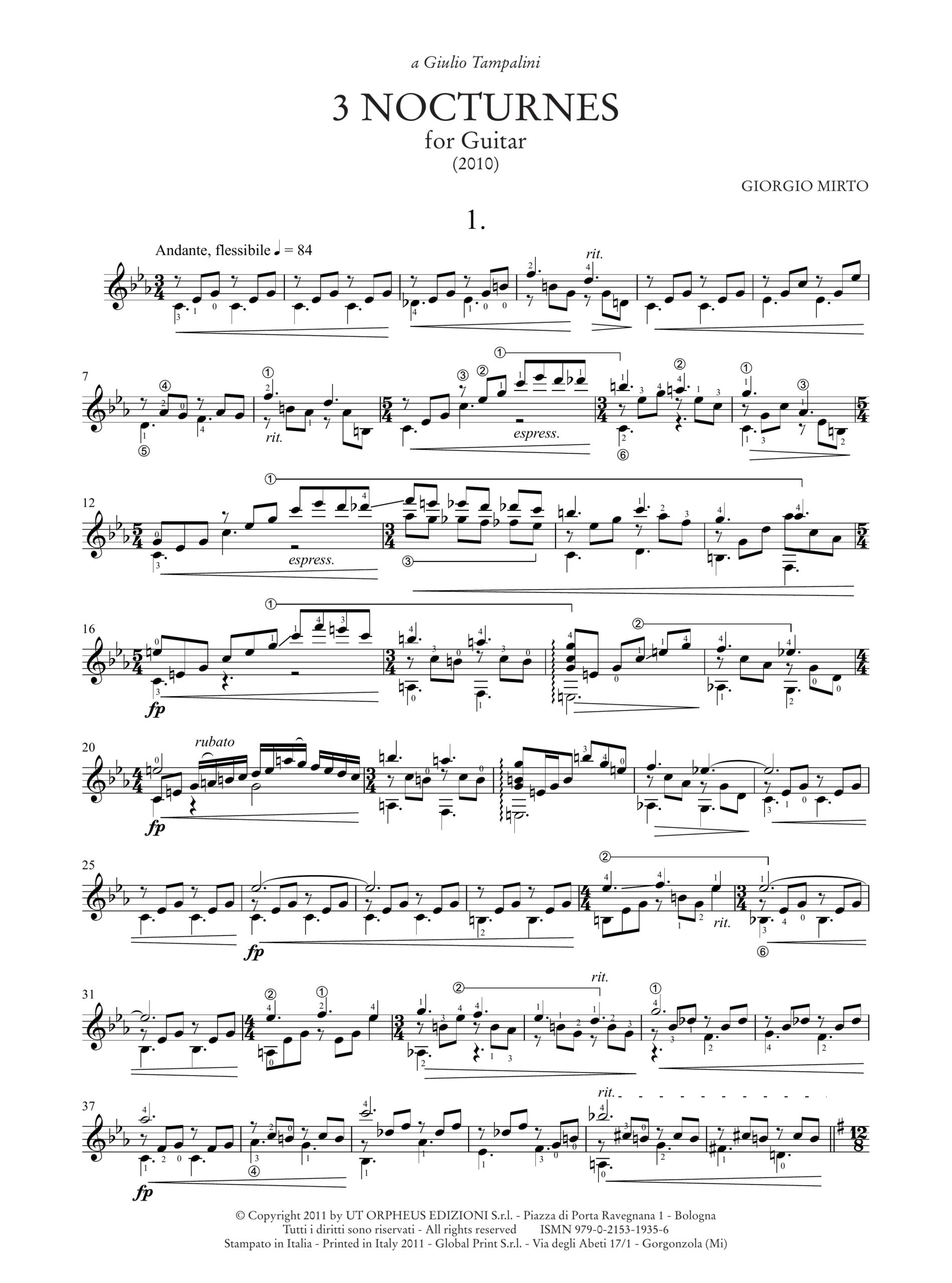 Mirto, Giorgio: 3 Nocturnes per Chitarra (2010)