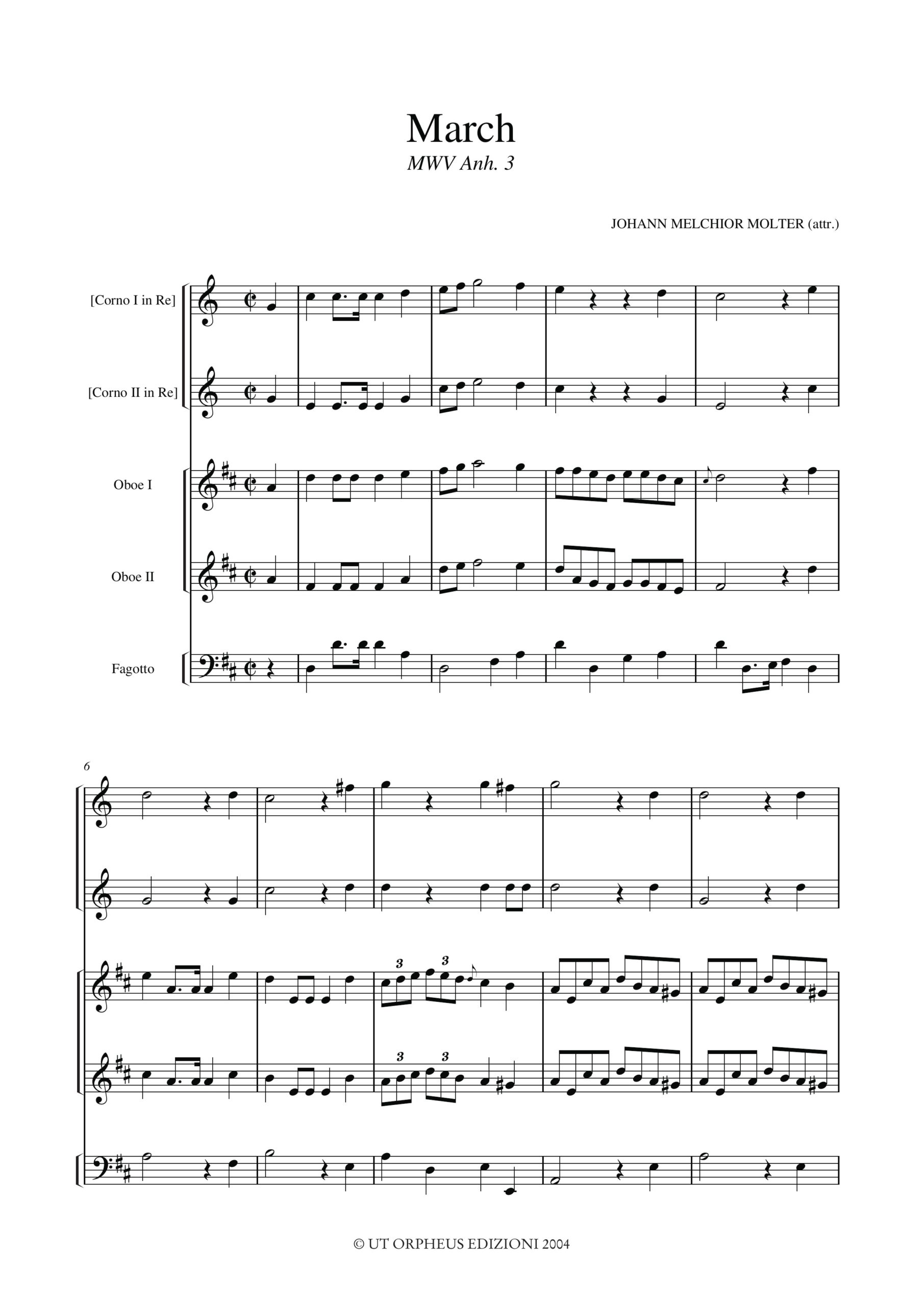 Molter, Johann Melchior: Marcia e Minuetto MWV Anh. 3-4 per 2 Oboi, 2 Corni e Fagotto