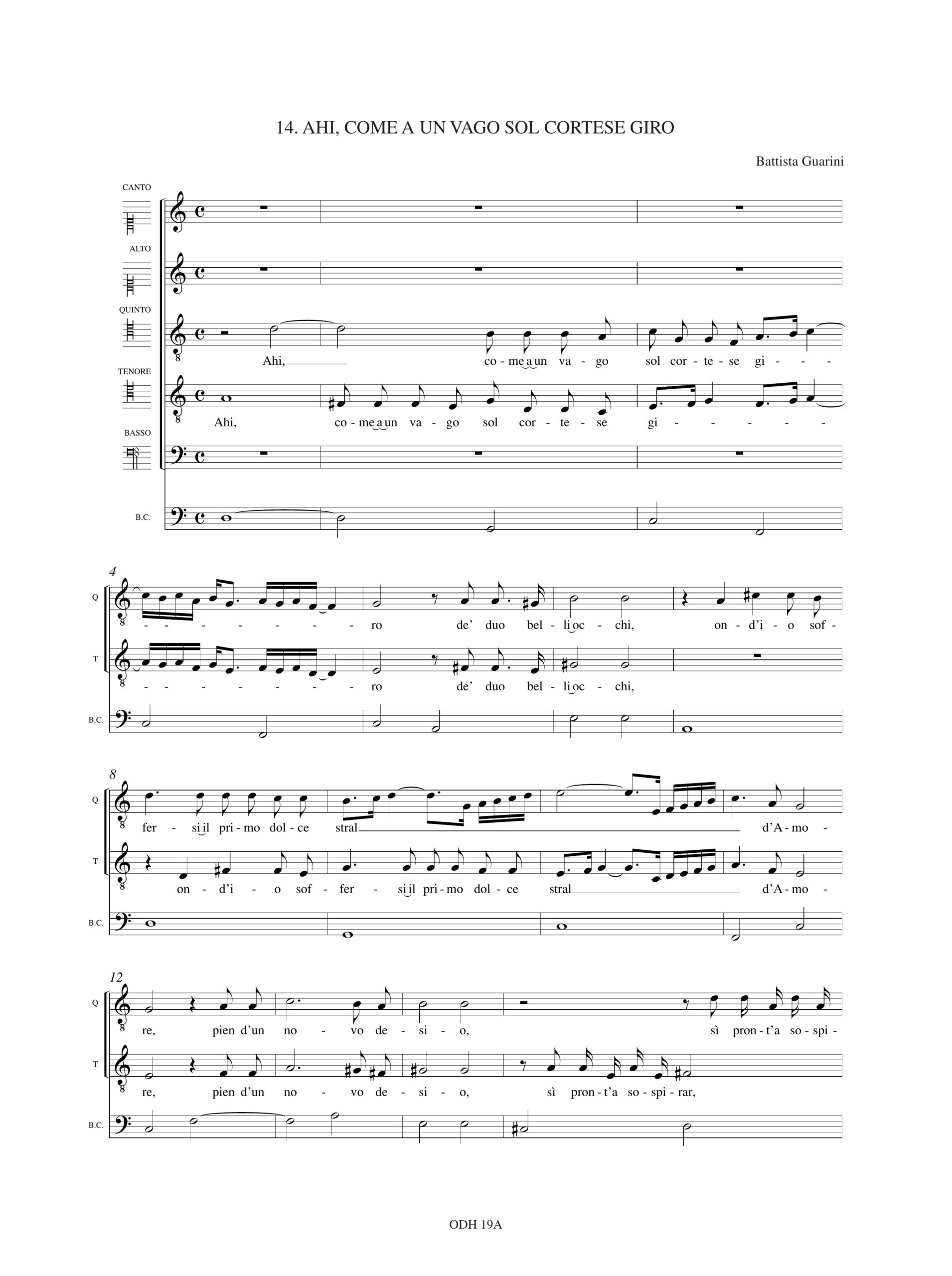 Monteverdi, Claudio: Ahi, come a un vago sol cortese giro (Madrigali. Libro V, n. 14) a 5 voci e Basso Continuo (SATTB, Bc) [Partitura Coro]