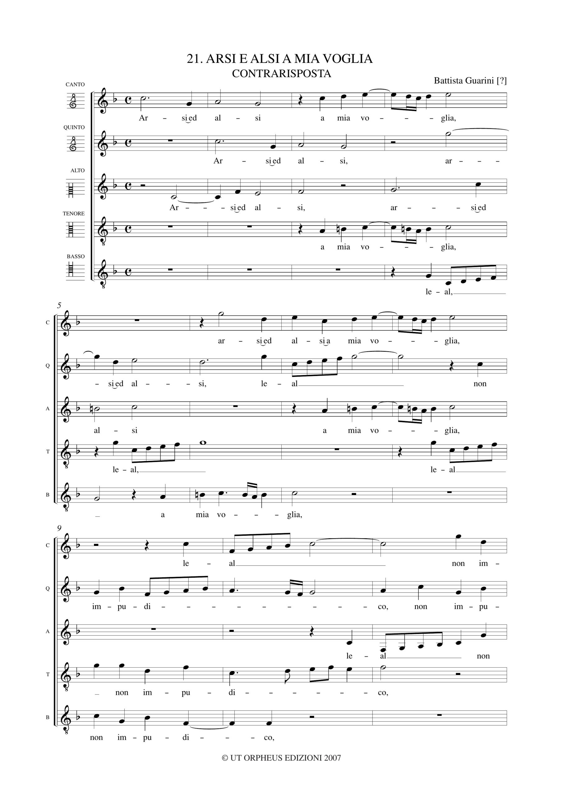 Monteverdi, Claudio: Arsi ed alsi a mia voglia (Madrigali. Libro I, n. 21) a 5 voci (SSATB) [Partitura Coro]