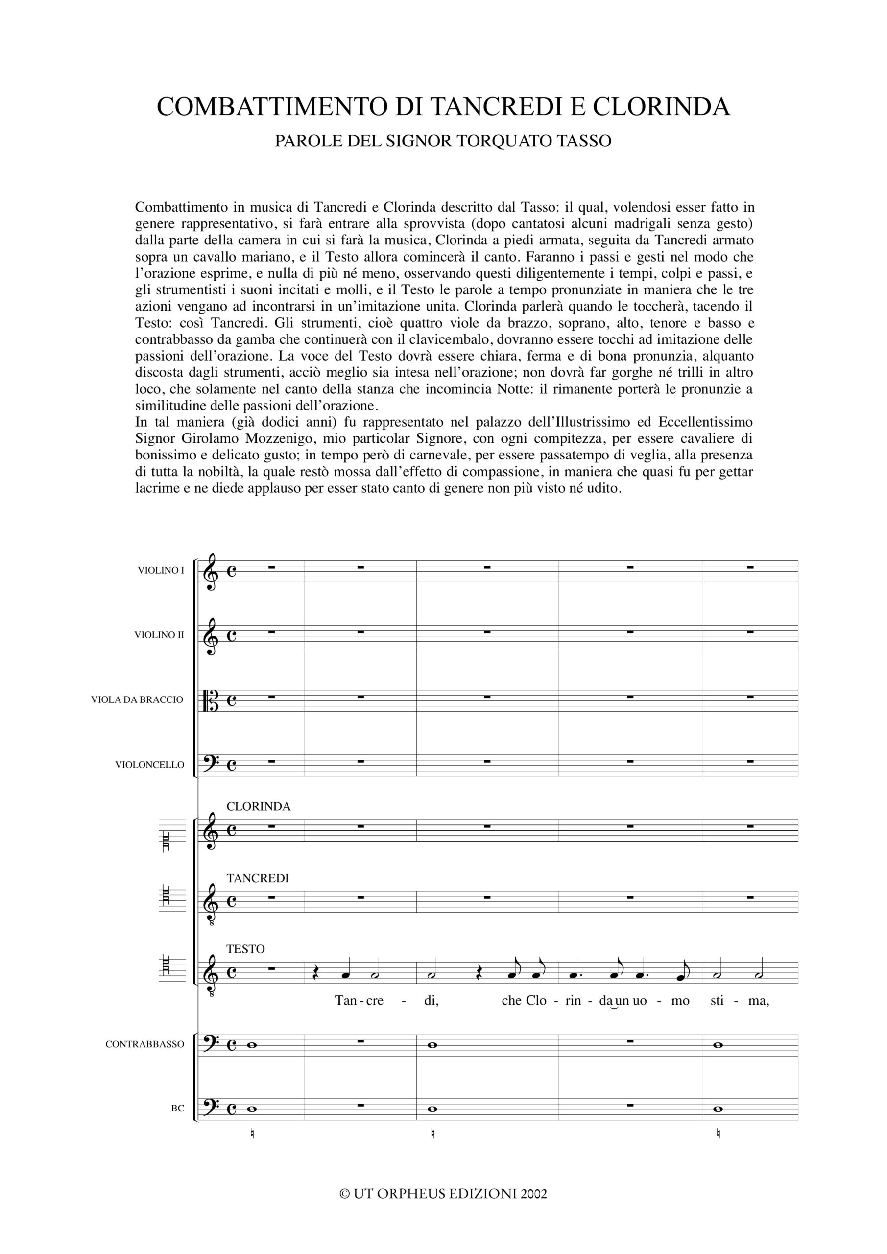 Monteverdi, Claudio: Combattimento di Tancredi e Clorinda (da “Madrigali Guerrieri e Amorosi. Libro VIII”) [Partitura]