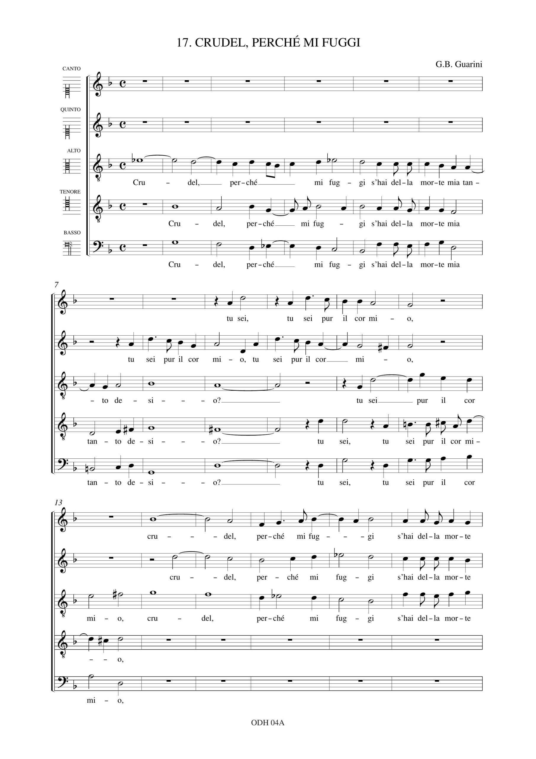 Monteverdi, Claudio: Crudel, perché mi fuggi (Madrigali. Libro II, n. 17) a 5 voci (SSATB) [Partitura Coro]