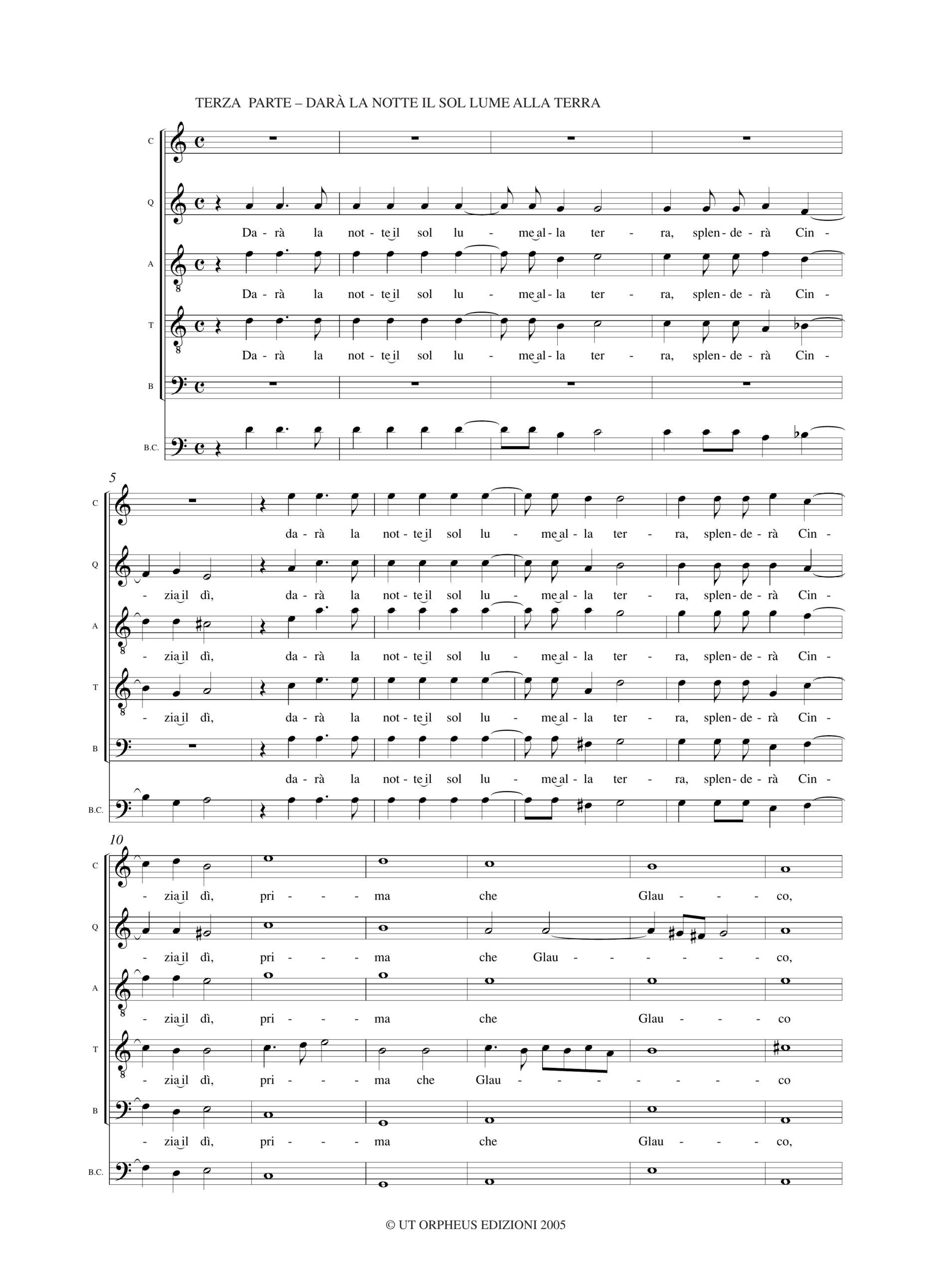 Monteverdi, Claudio: Darà la notte il sol lume alla terra (Lagrime d’amante al sepolcro dell’amata. Sestina – Terza parte) (Madrigali. Libro VI, n. 5.3) a 5 voci e Basso Continuo (SSATB, Bc) [Partitura Coro]