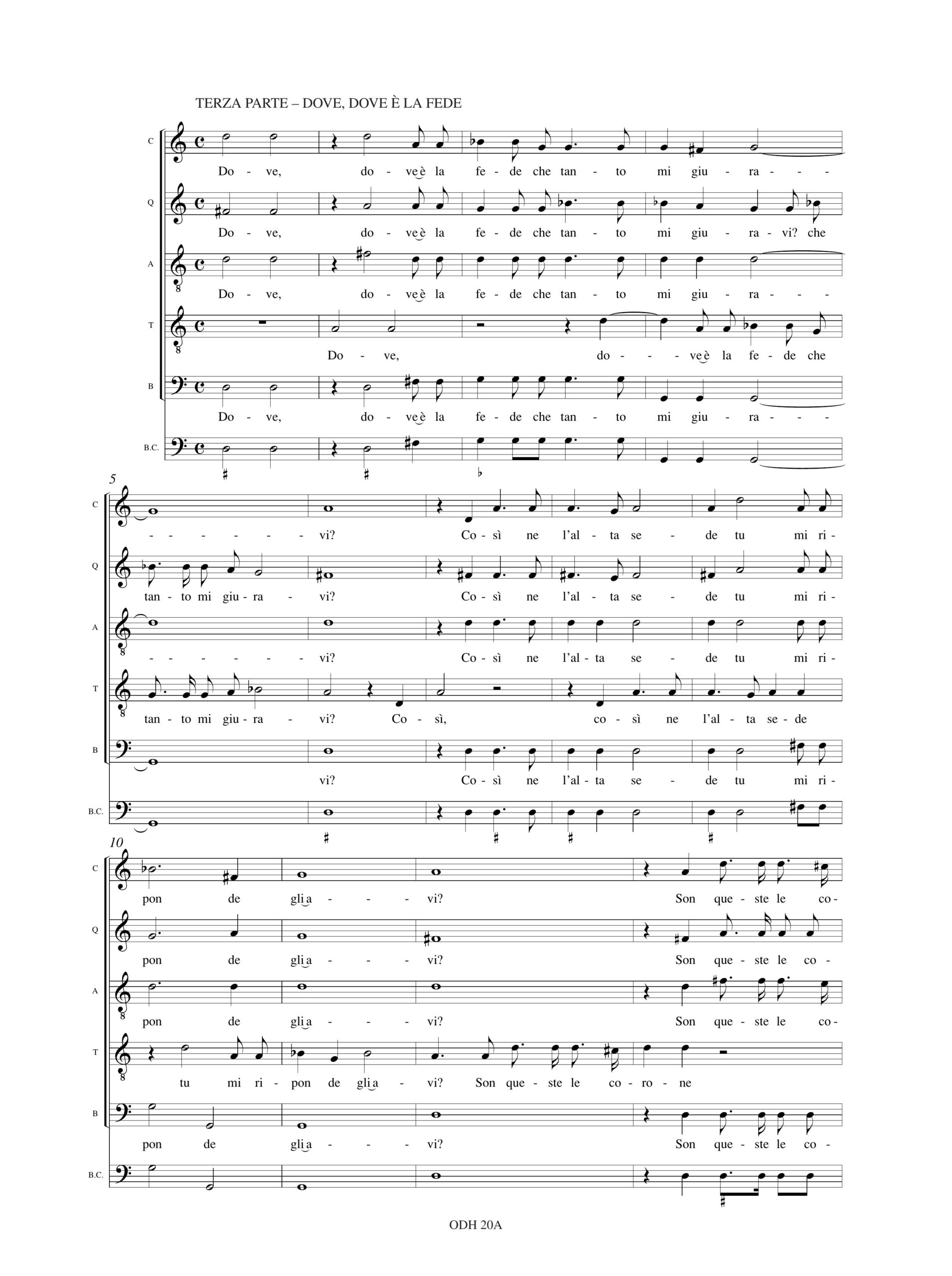 Monteverdi, Claudio: Dove, dove è la fede (Lamento d’Arianna – Terza parte) (Madrigali. Libro VI, n. 1.3) a 5 voci e Basso Continuo (SSATB, Bc) [Partitura Coro]