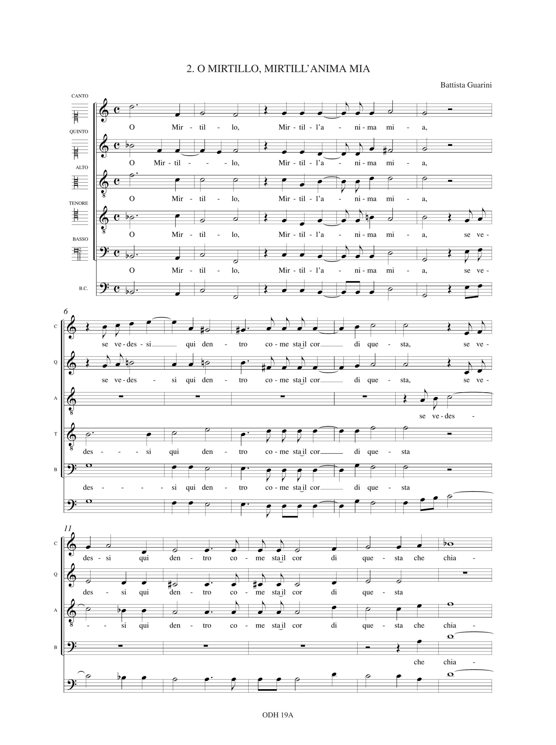 Monteverdi, Claudio: O Mirtillo, Mirtill’anima mia (Madrigali. Libro V, n. 2) a 5 voci e Basso Continuo (SSATB, Bc) [Partitura Coro]