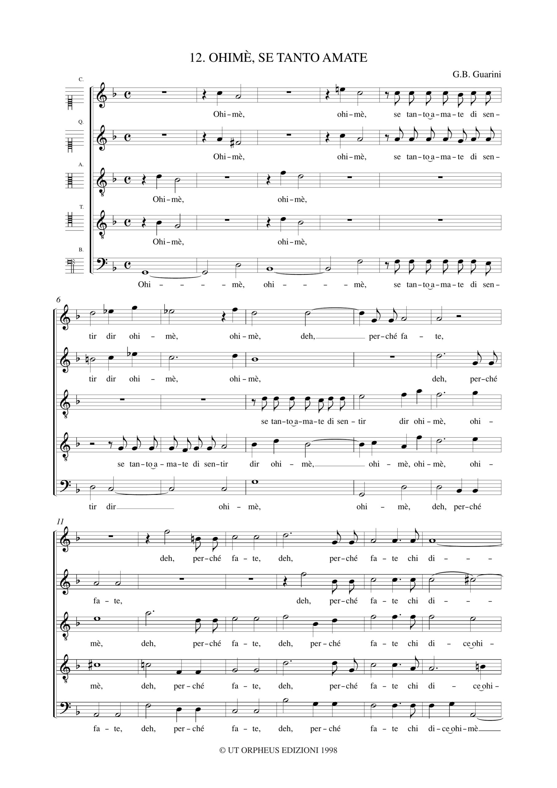 Monteverdi, Claudio: Ohimè, se tanto amate (Madrigali. Libro IV, n. 12) a 5 voci (SSATB) [Partitura Coro]
