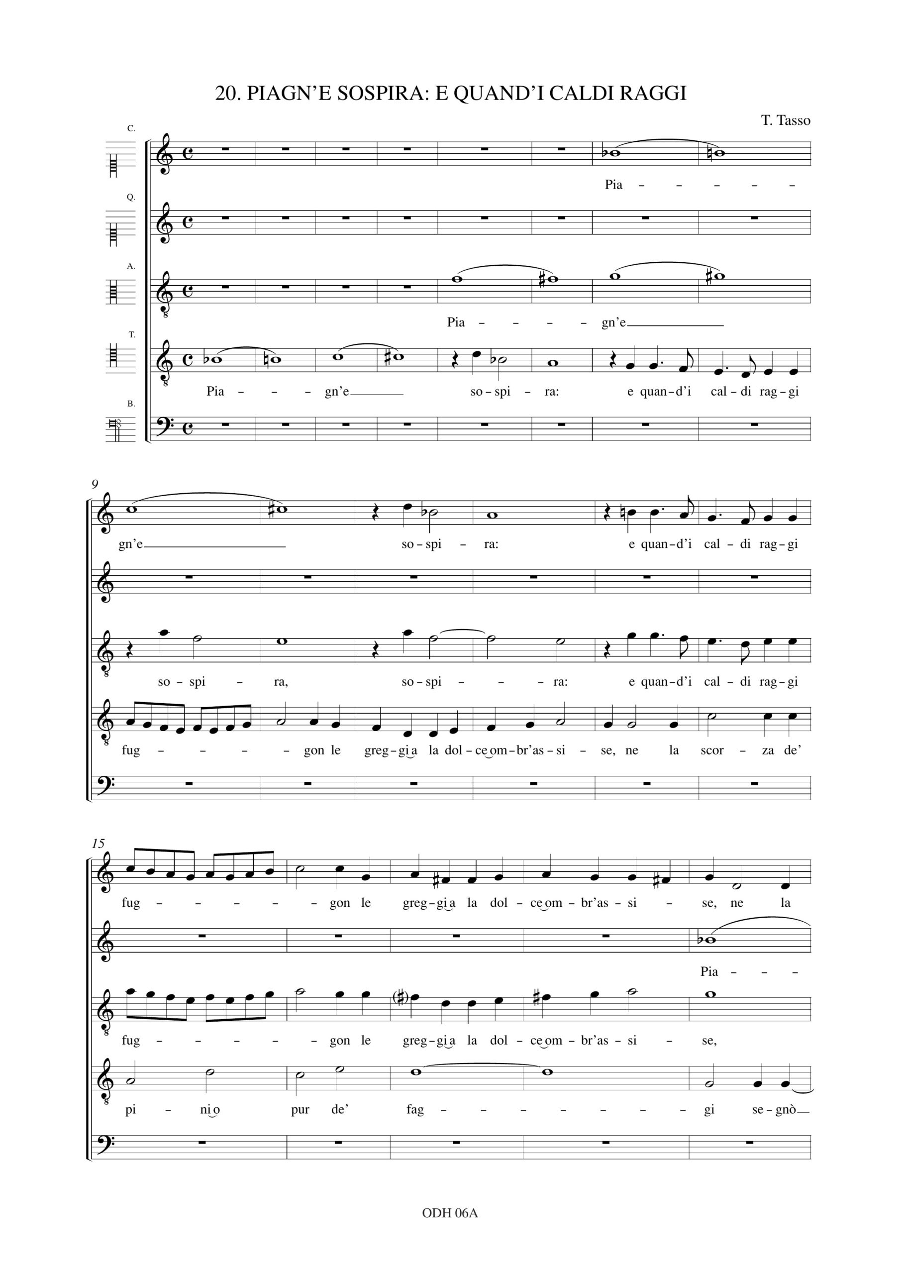 Monteverdi, Claudio: Piagn’e sospira: e quand’i caldi raggi (Madrigali. Libro IV, n. 20) a 5 voci (SSATB) [Partitura Coro]