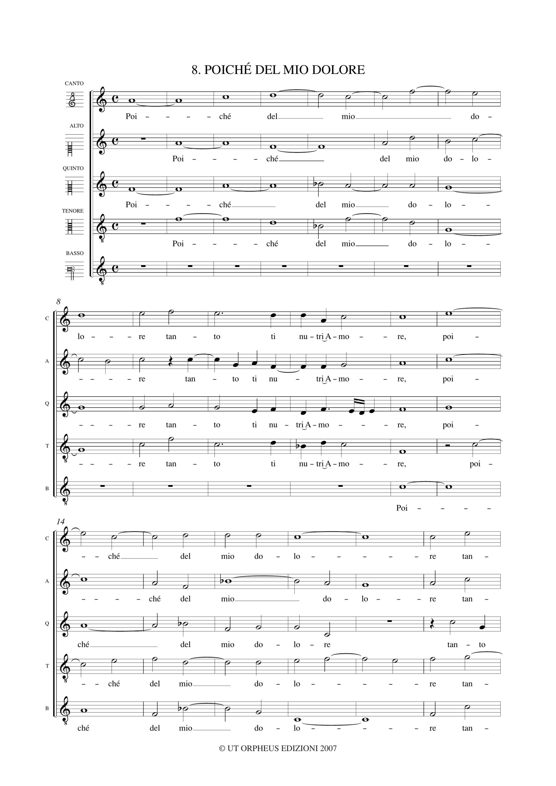 Monteverdi, Claudio: Poiché del mio dolore (Madrigali. Libro I, n. 8) a 5 voci (SSATB) [Partitura Coro]
