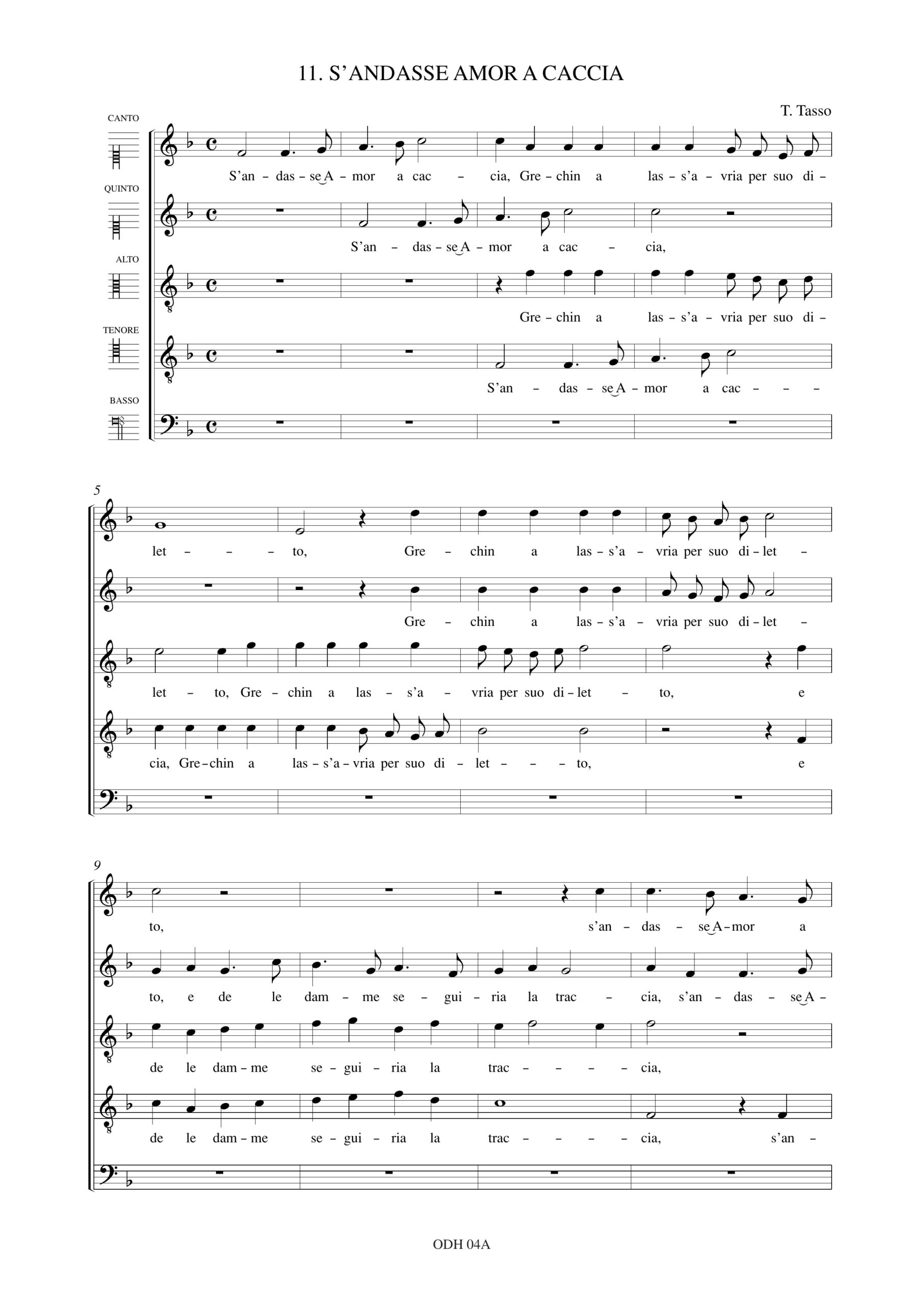 Monteverdi, Claudio: S’andasse Amor a caccia (Madrigali. Libro II, n. 11) a 5 voci (SSATB) [Partitura Coro]