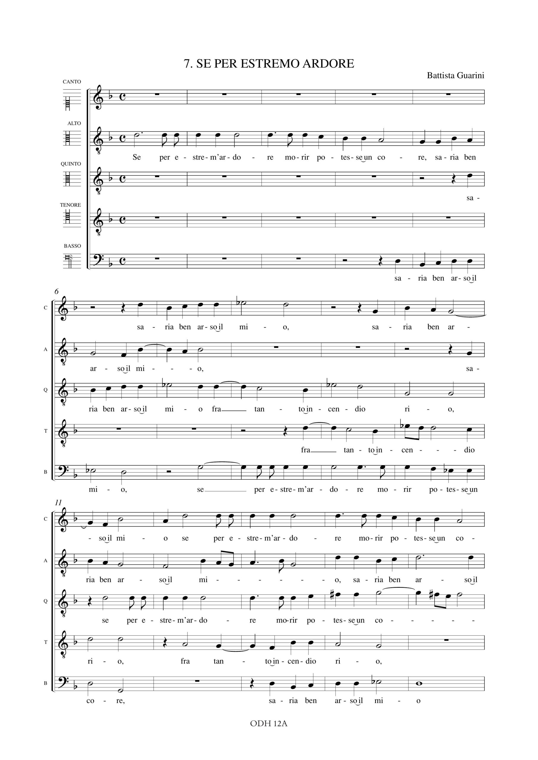 Monteverdi, Claudio: Se per estremo ardore (Madrigali. Libro III, n. 7) a 5 voci (SAATB) [Partitura Coro]