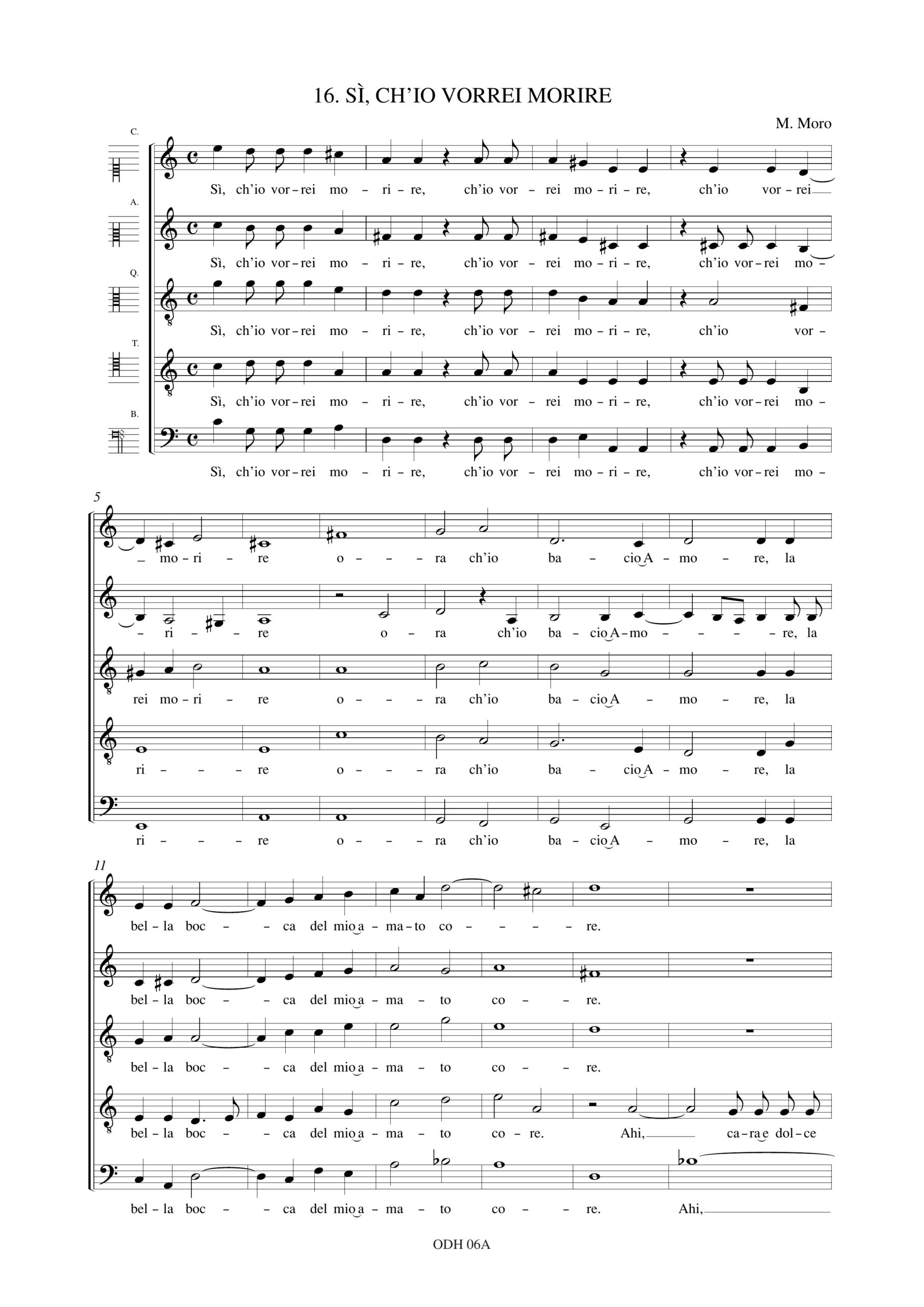 Monteverdi, Claudio: Sì, ch’io vorrei morire (Madrigali. Libro IV, n. 16) a 5 voci (SAATB) [Partitura Coro]