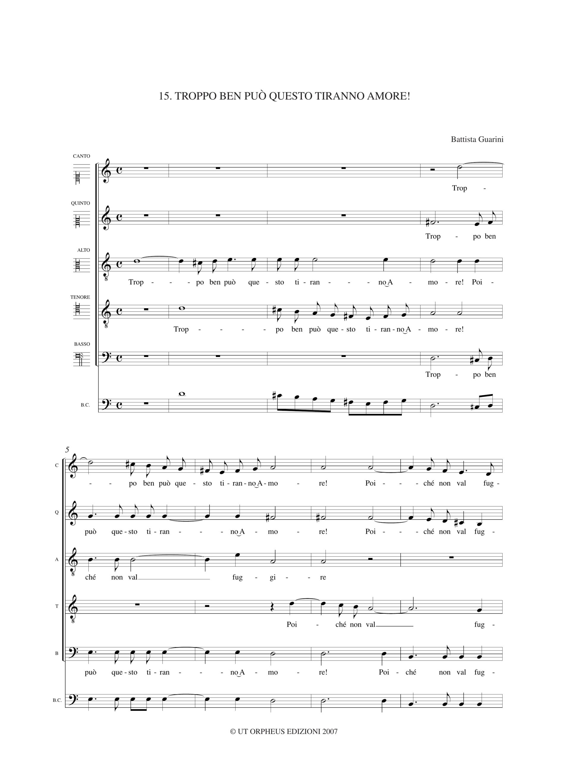 Monteverdi, Claudio: Troppo ben può questo tiranno Amore! (Madrigali. Libro V, n. 15) a 5 voci e Basso Continuo (SAATB, Bc) [Partitura Coro]