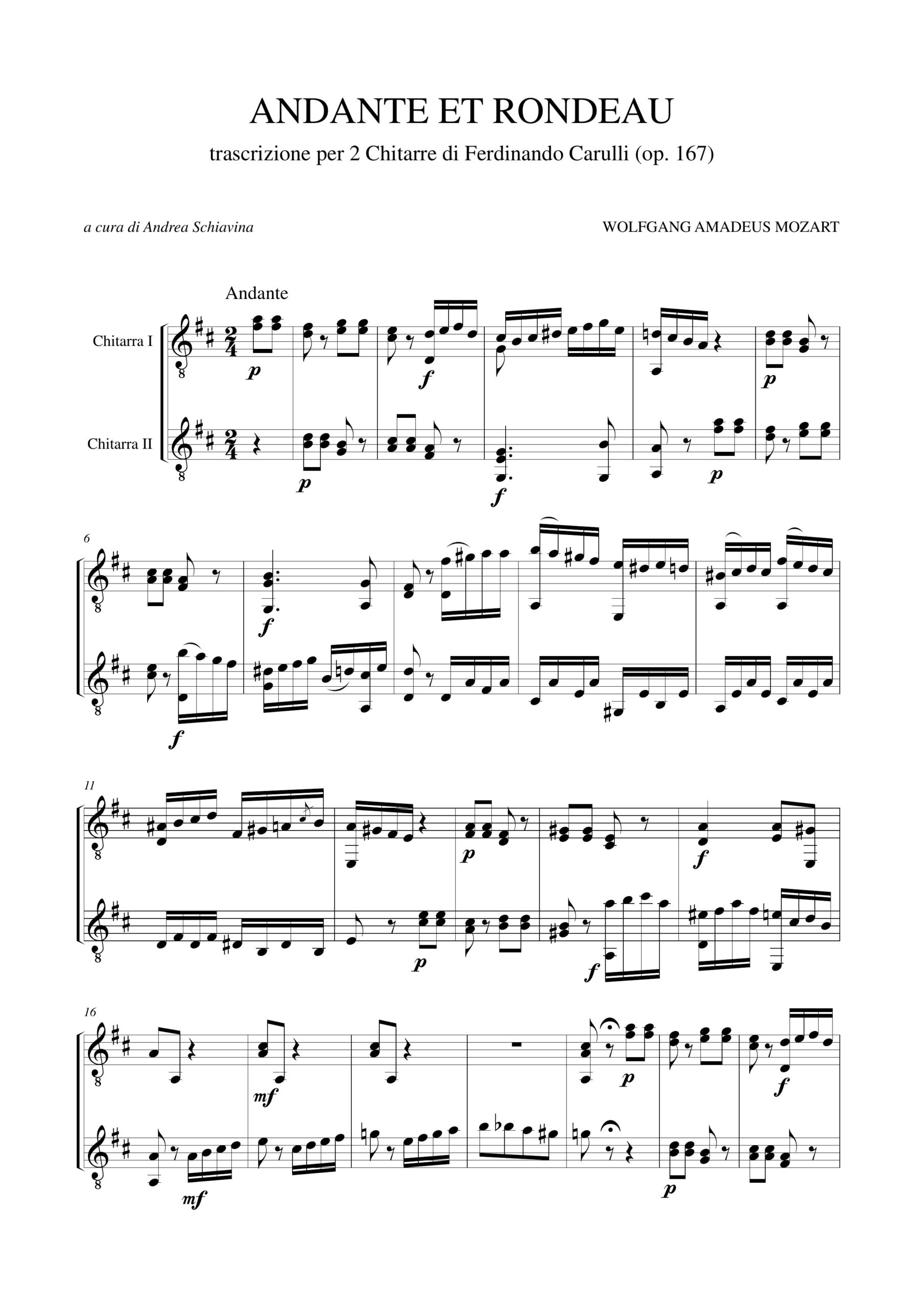 Mozart, Wolfgang Amadeus: Andante et Rondeau. Trascrizione per 2 Chitarre di Ferdinando Carulli (Op. 167)