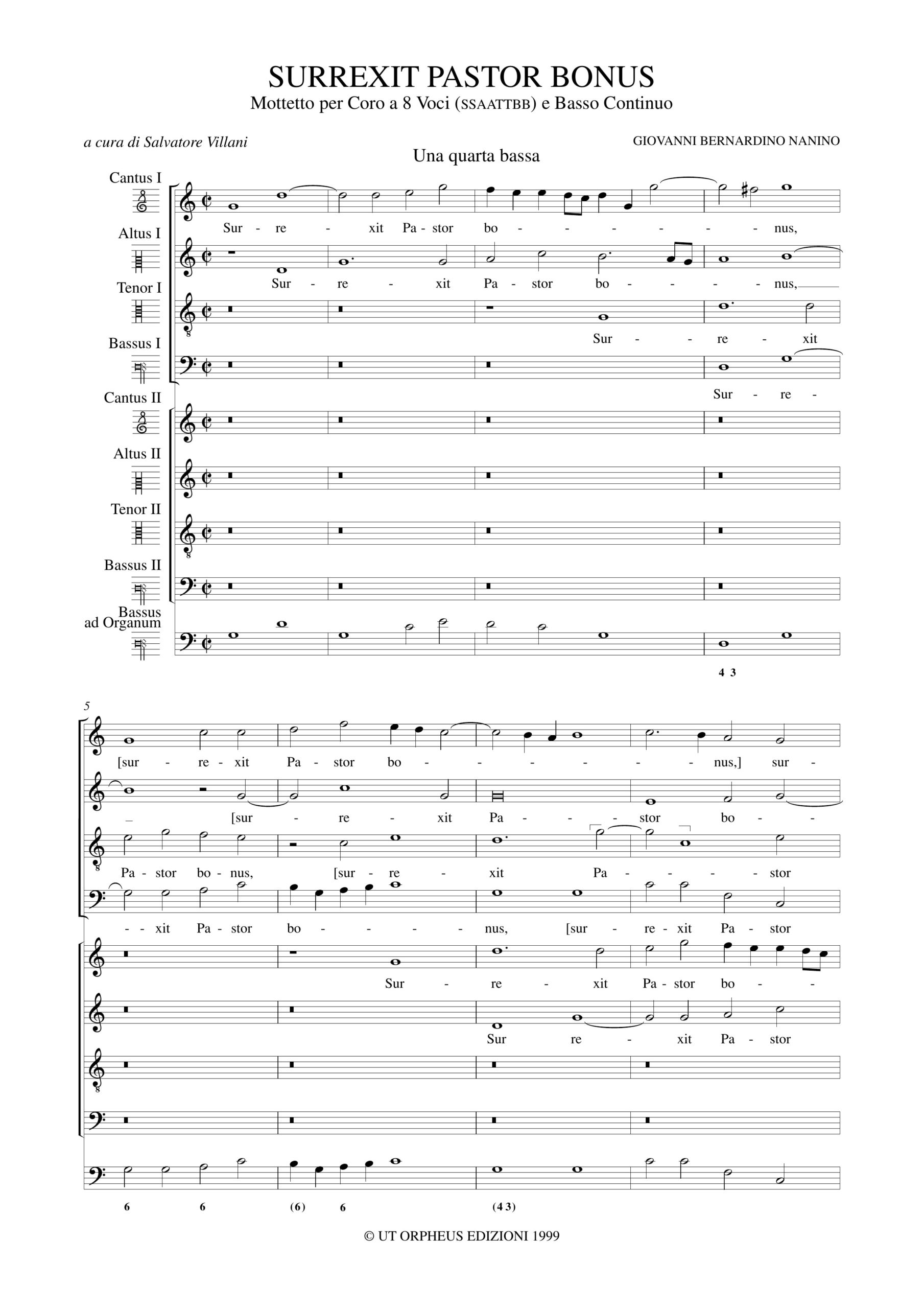 Nanino, Giovanni Bernardino: Surrexit Pastor Bonus. Mottetto (Roma 1607) per Coro a 8 voci (SATB-SATB) e Basso Continuo [Partitura]
