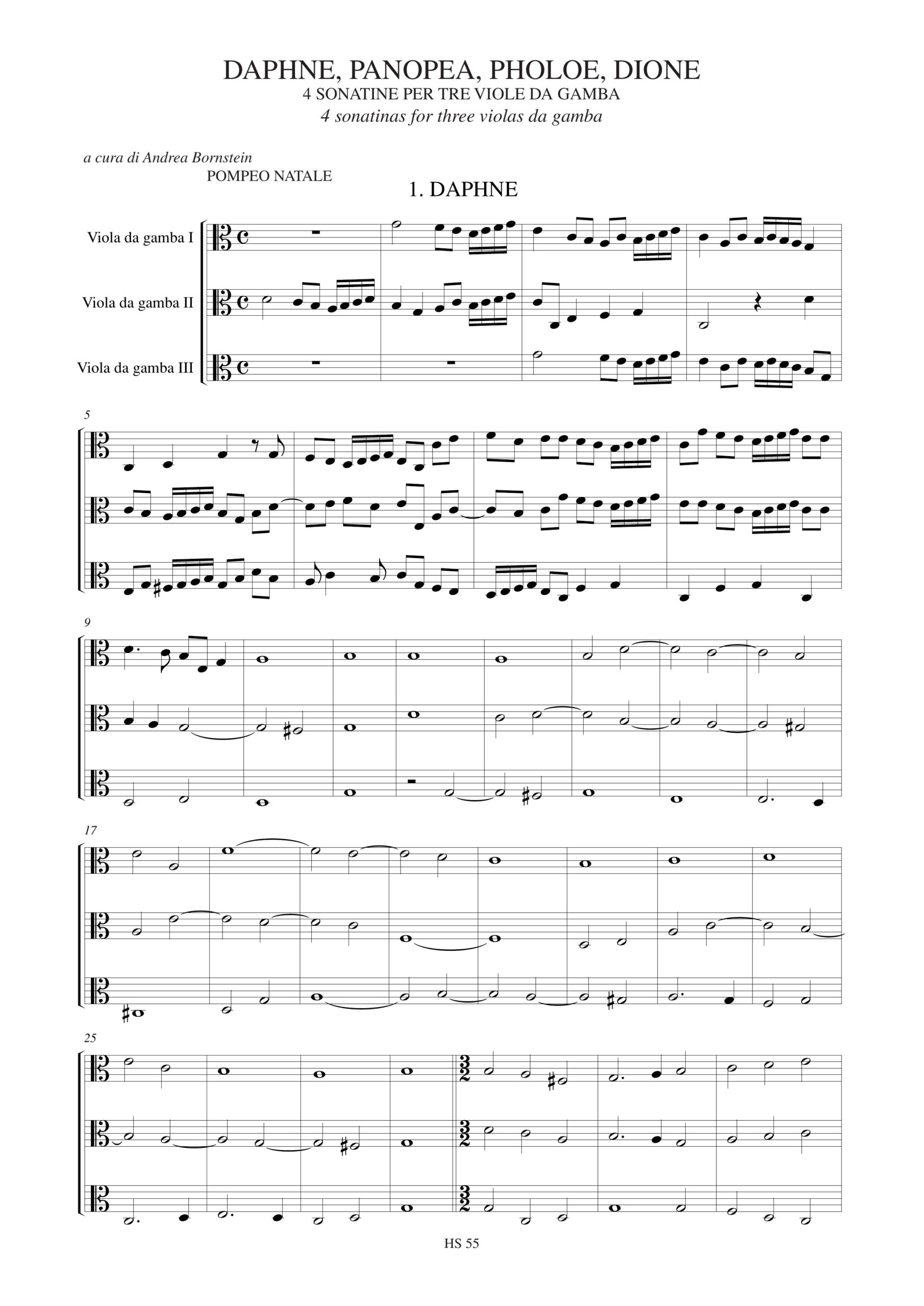 Natale, Pompeo: Daphne, Panopea, Pholoe, Dione. 4 Sonatine (Roma 1681) per 3 Viole da Gamba
