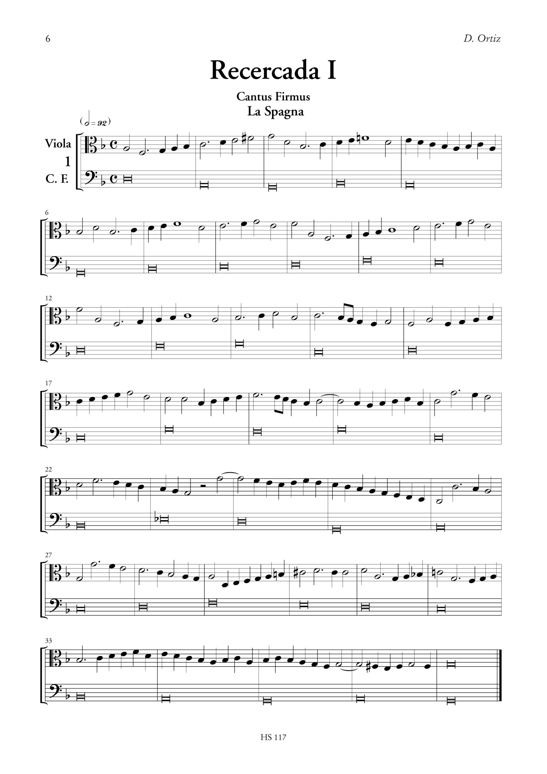 Ortiz, Diego: 4 Recercadas per Viola da Gamba sola e 6 Recercadas sopra “La Spagna” per Viola da Gamba e Basso dal “Trattado de glosas” (Roma 1553)