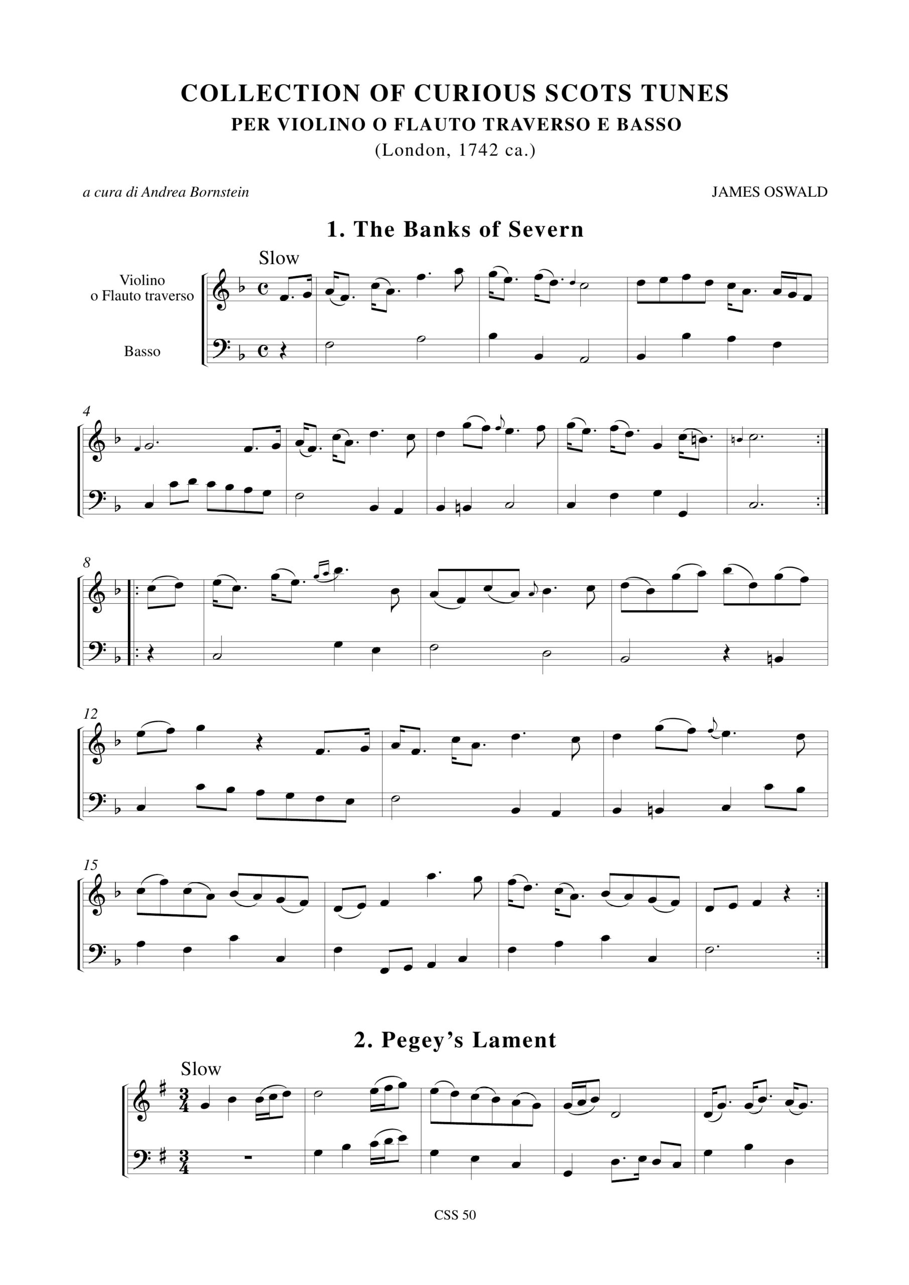 Oswald, James: Collection of curious Scots Tunes (London ca.1742) per Violino (Flauto Traverso) e Basso Continuo