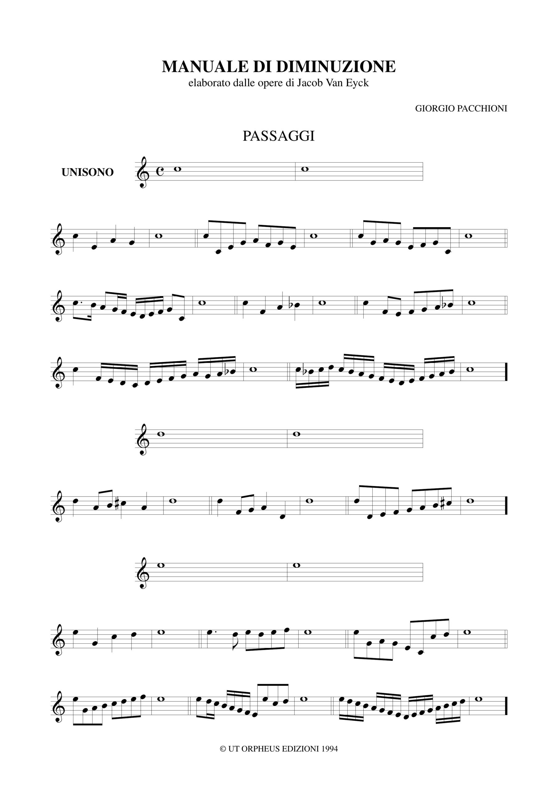 Pacchioni, Giorgio: Manuale di Diminuzione elaborato dalle opere di Jacob Van Eyck per Flauto Dolce (Violino, Flauto Traverso, Viola da Gamba)