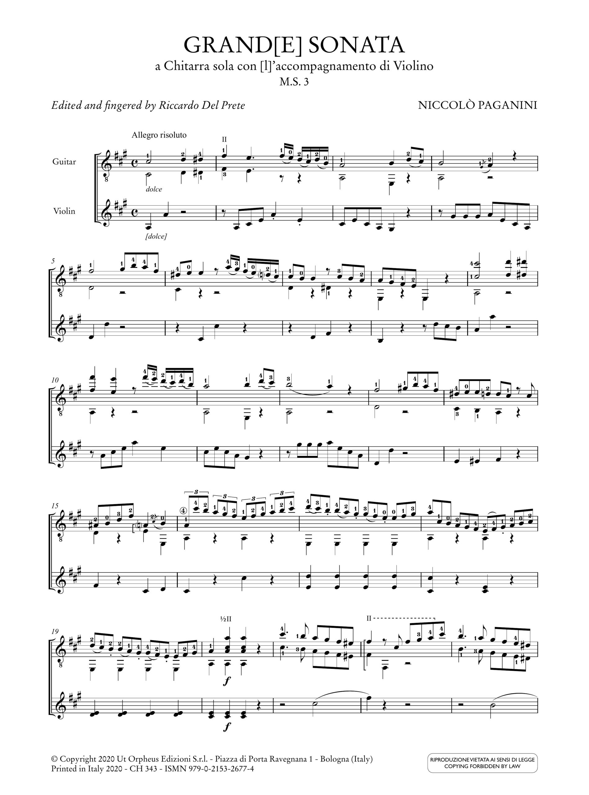Paganini, Niccolò: Grande Sonata a Chitarra sola con l’accompagnamento di Violino M.S. 3