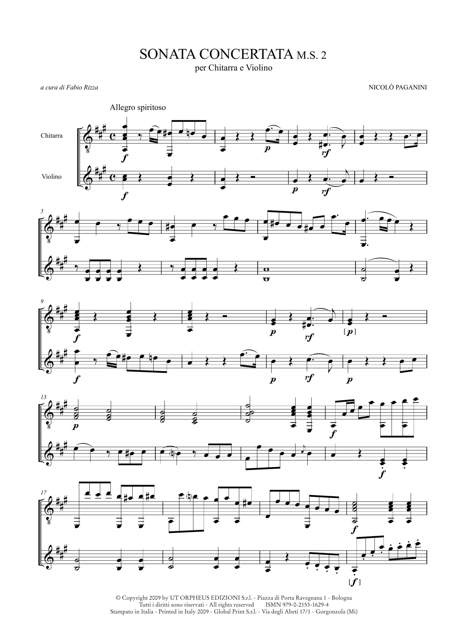 Paganini, Niccolò: Sonata Concertata M.S. 2 per Chitarra e Violino