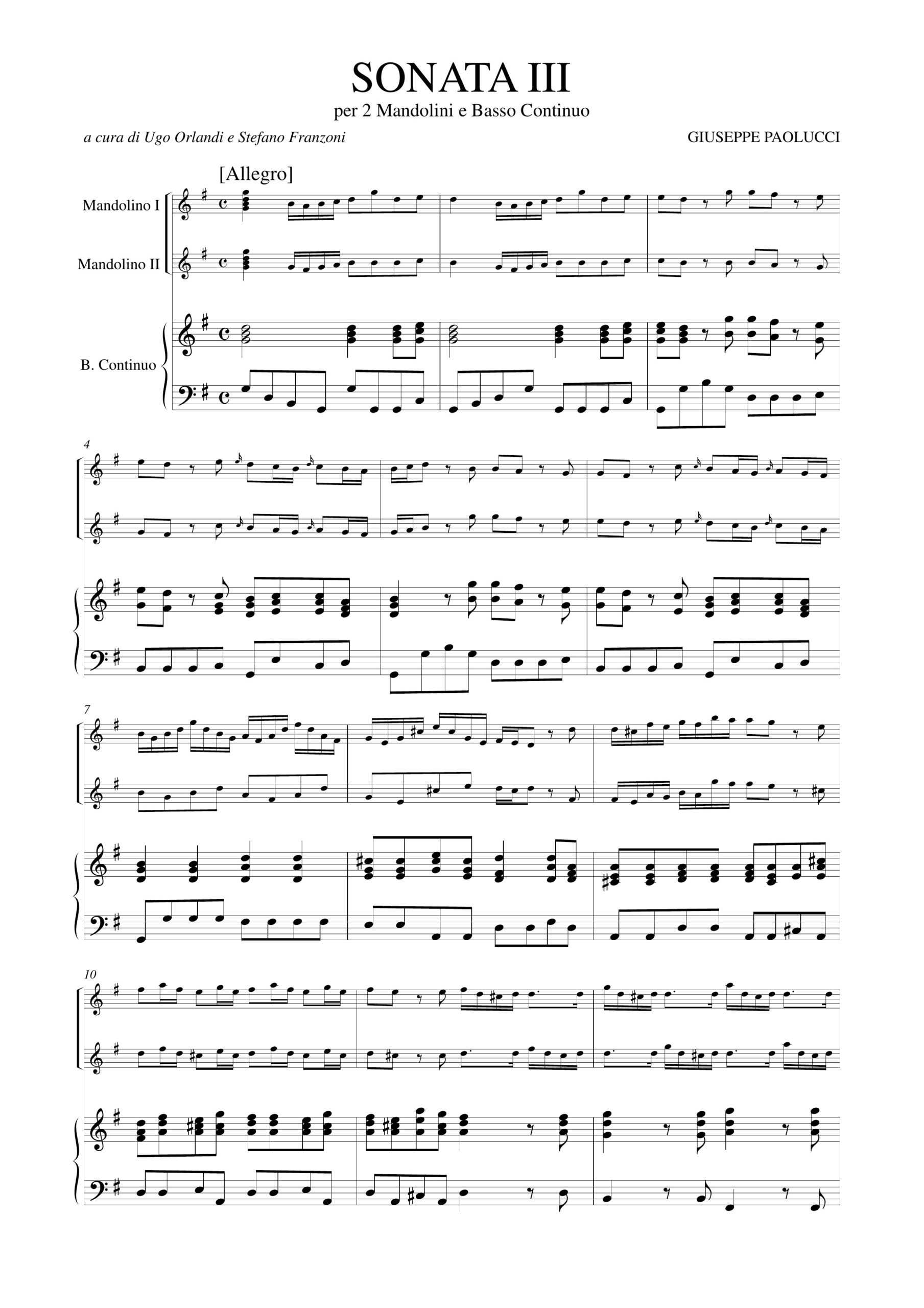 Paolucci, Giuseppe: Sonata III in Sol maggiore per 2 Mandolini e Basso Continuo