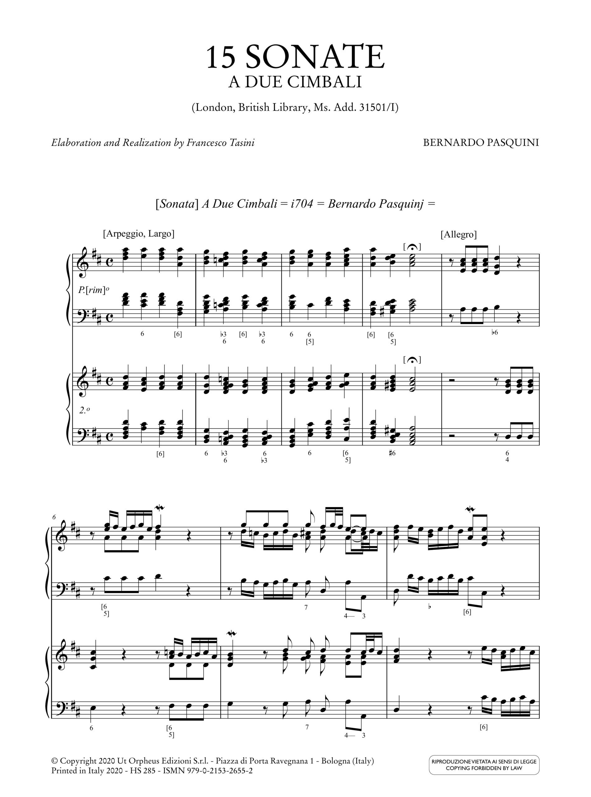 Pasquini, Bernardo: 15 Sonate a due cimbali (London, British Library, Ms. Add. 31501/I)