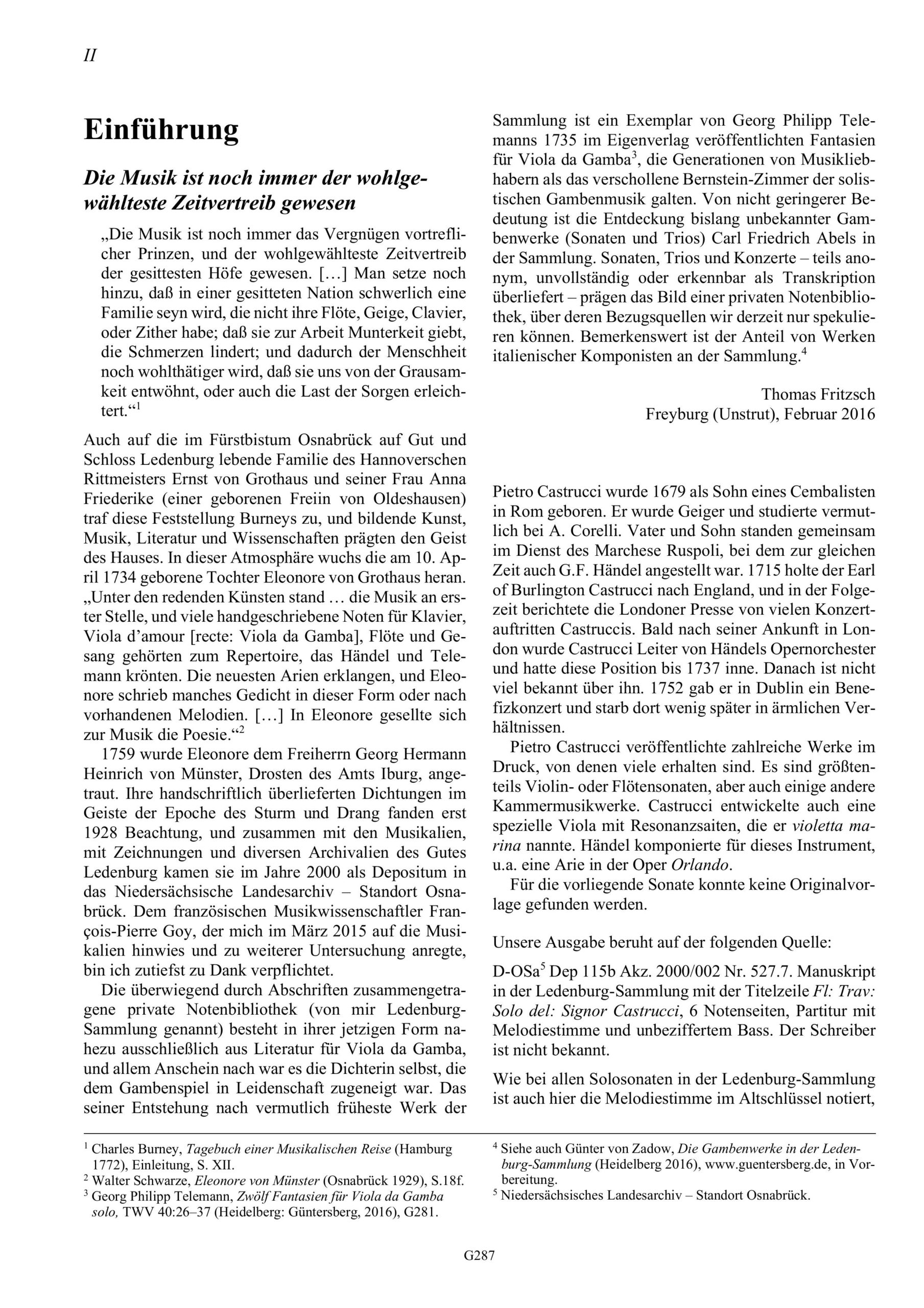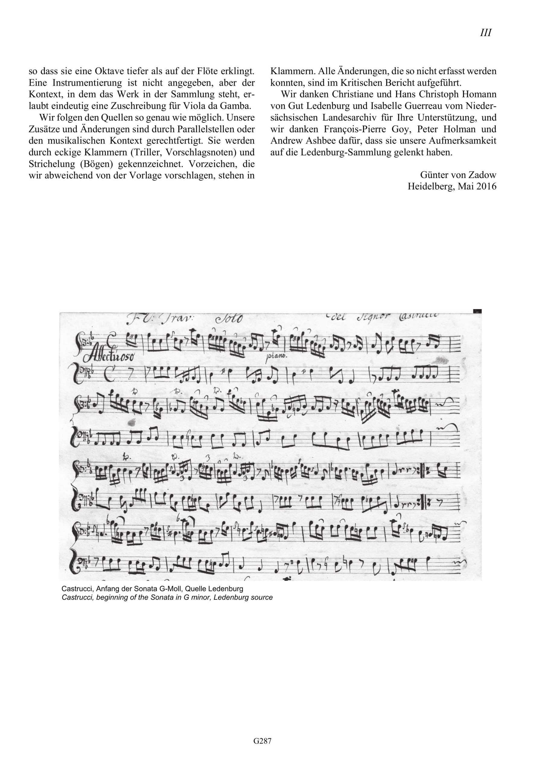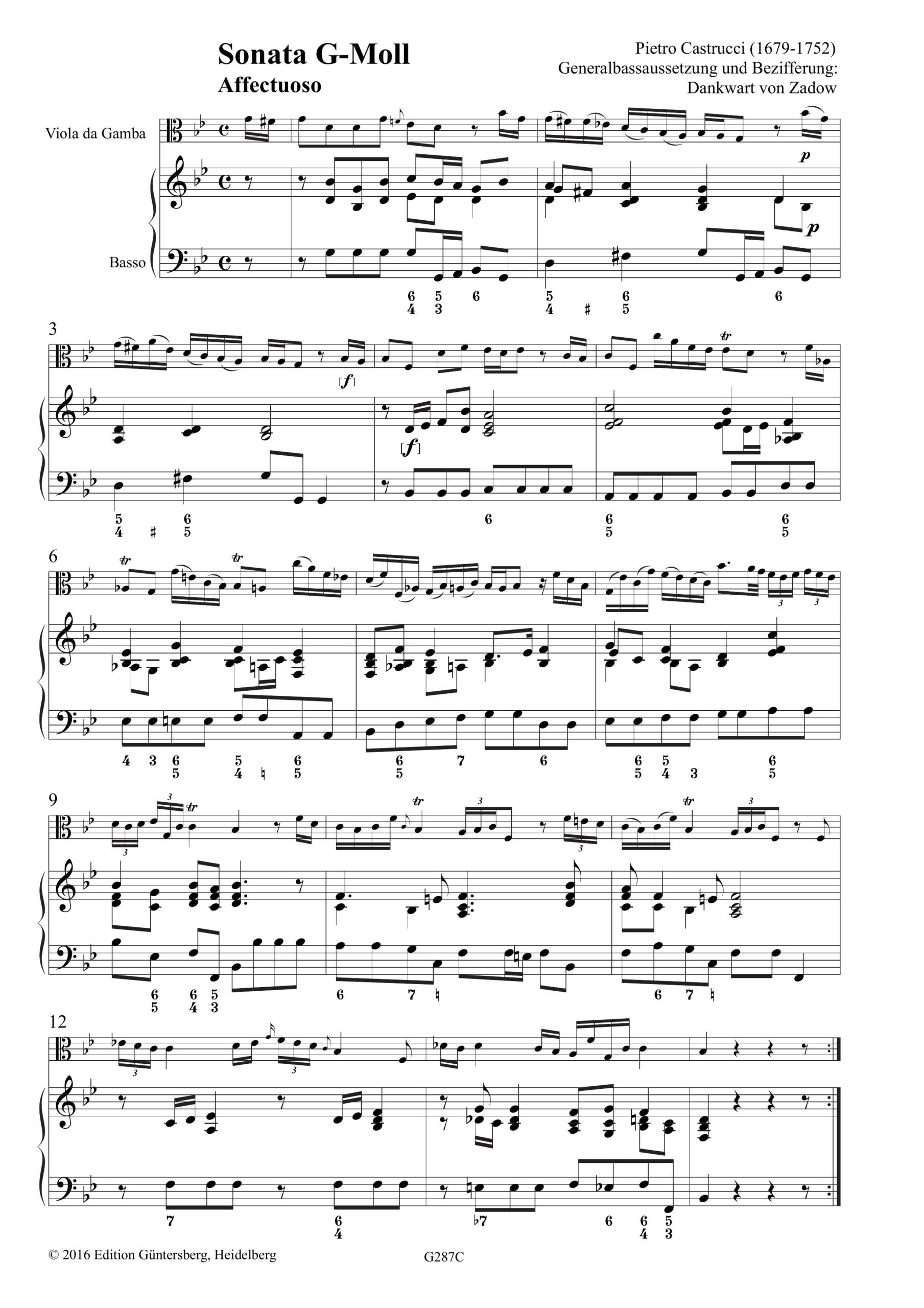 Castrucci, Sonata für Viola da Gamba und Basso, Erstdruck, VdG+Bc, 2 Partituren, eine davon mit Aussetzung, 2 Stimmen, 40 S., ISMN 979-0-50174-287-5