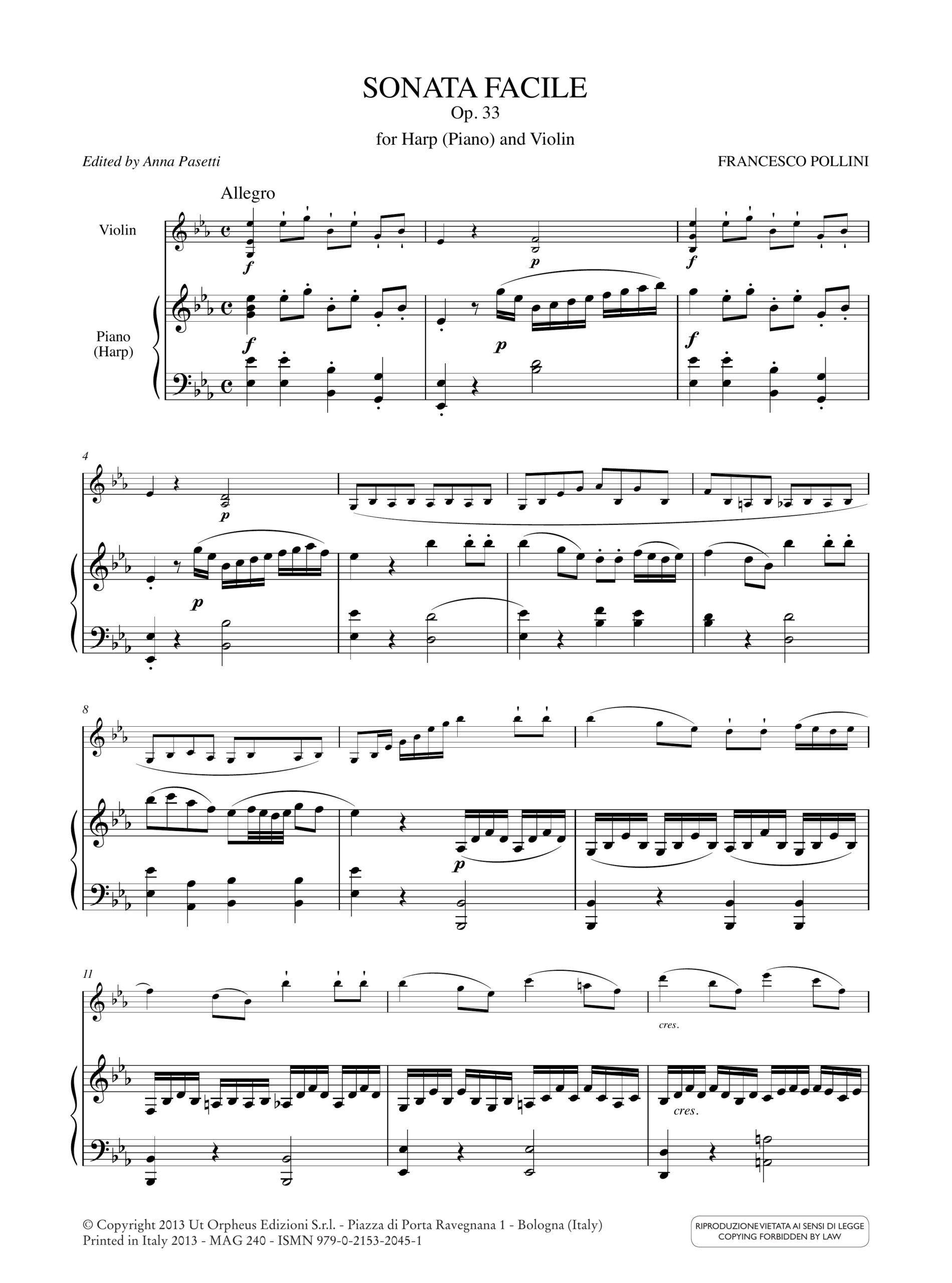 Pollini, Francesco: Sonata Facile Op. 33 per Arpa (Pianoforte) e Violino