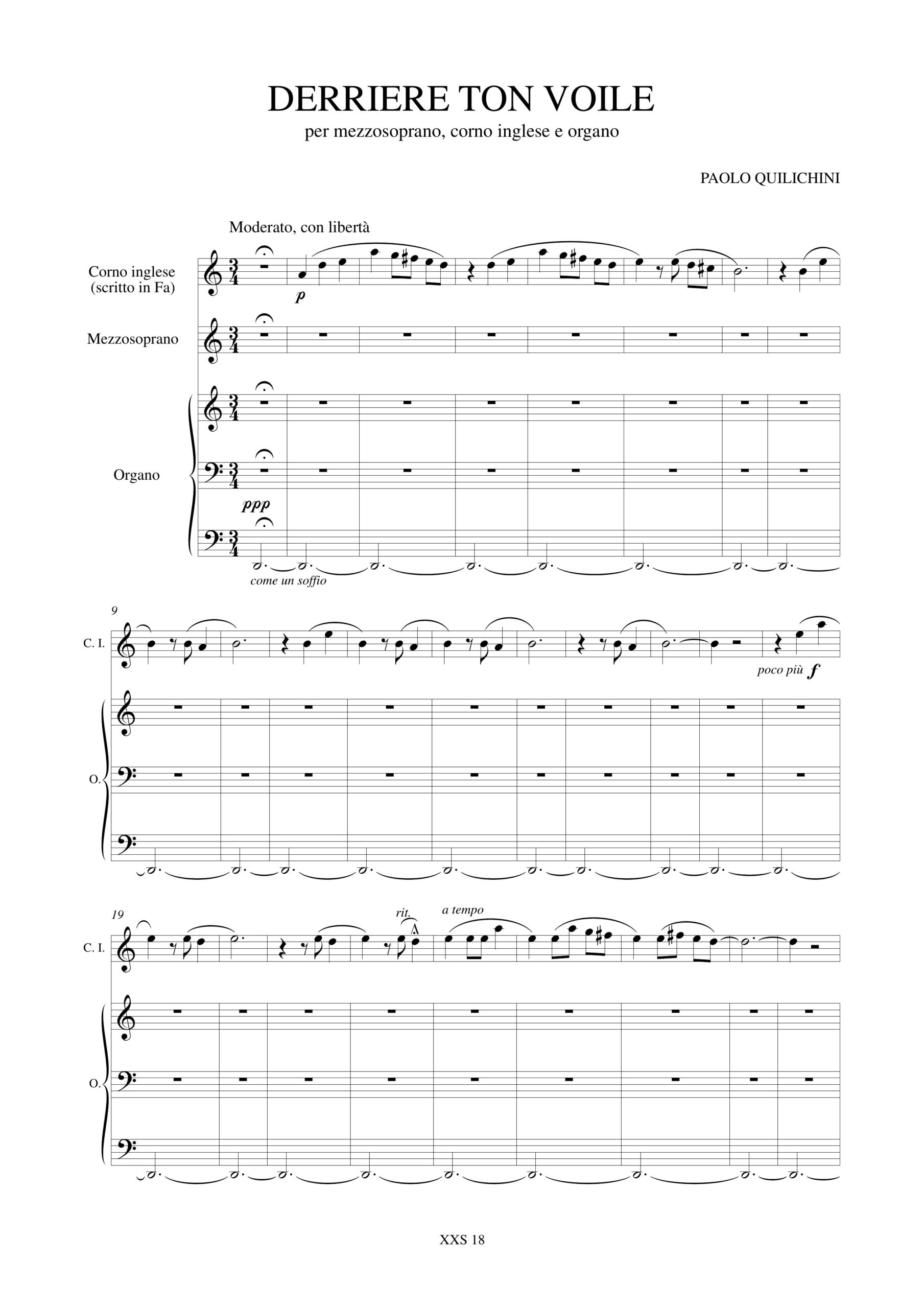 Quilichini, Paolo: Dérriere ton voile (dal Cantico dei Cantici) per Mezzosoprano, Corno Inglese e Organo (1994)