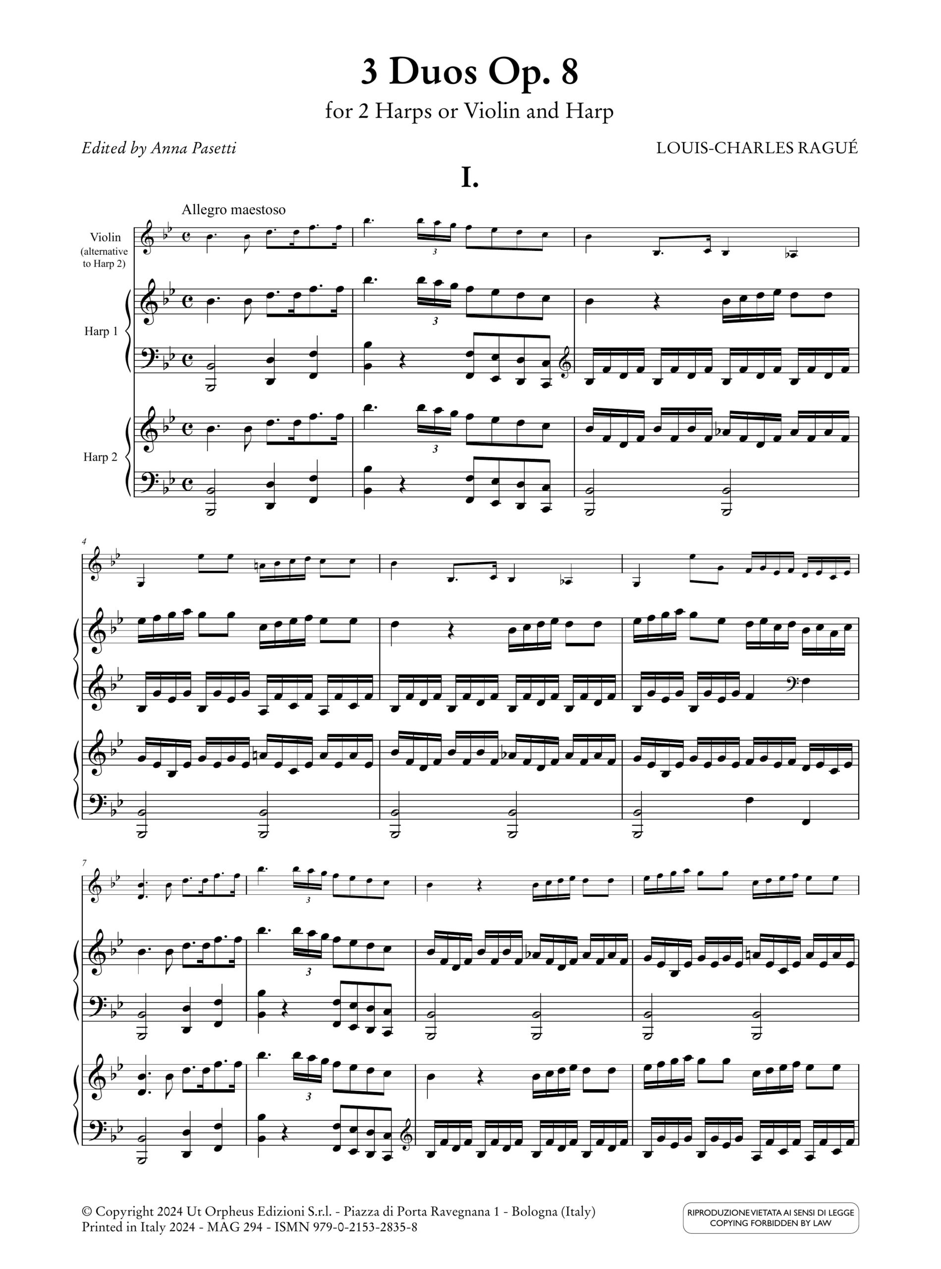 Ragué, Louis-Charles: 3 Duetti op. 8 per 2 Arpe o Violino e Arpa