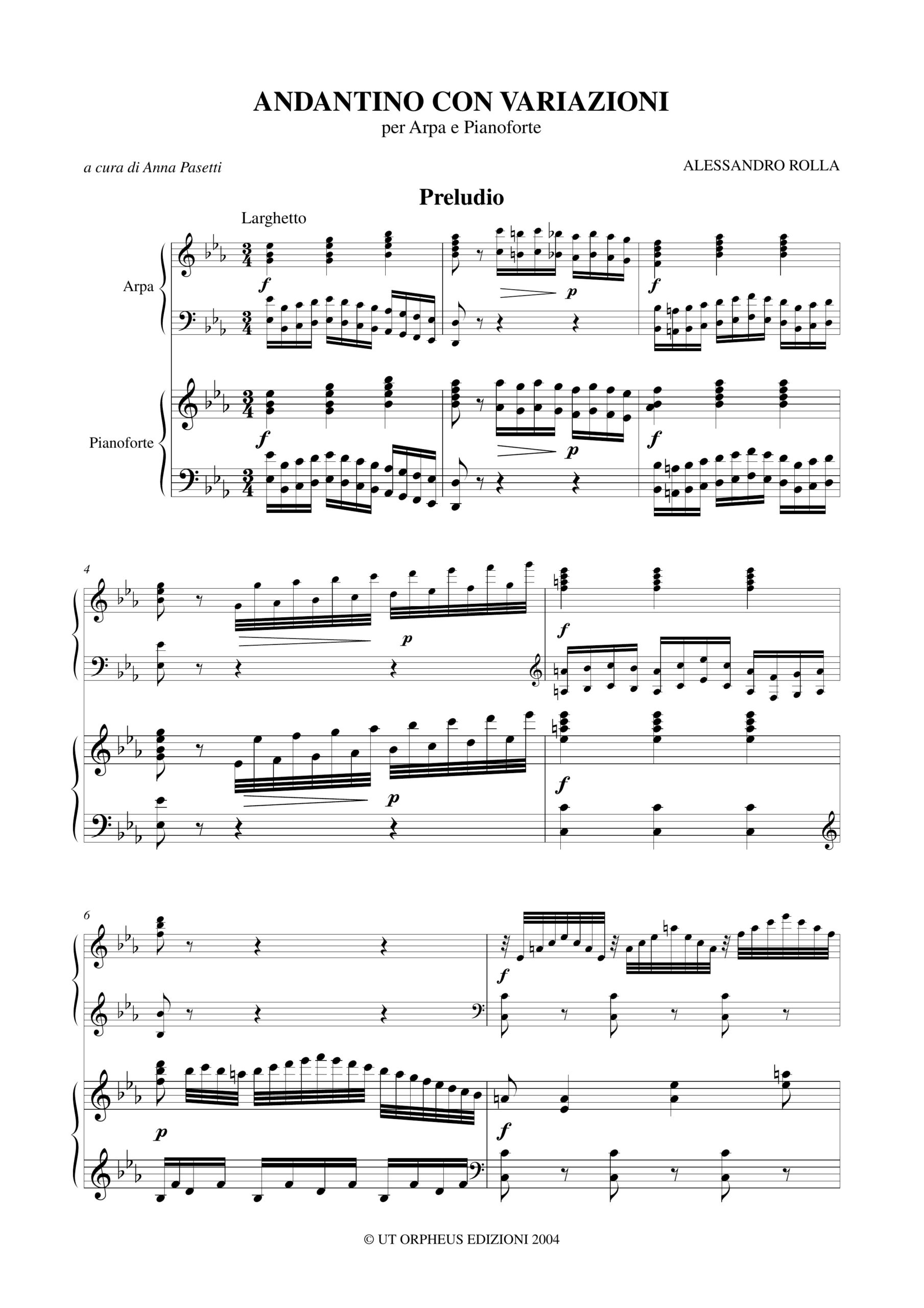 Rolla, Alessandro: Andantino con Variazioni per Arpa e Pianoforte (Violino e Arpa)