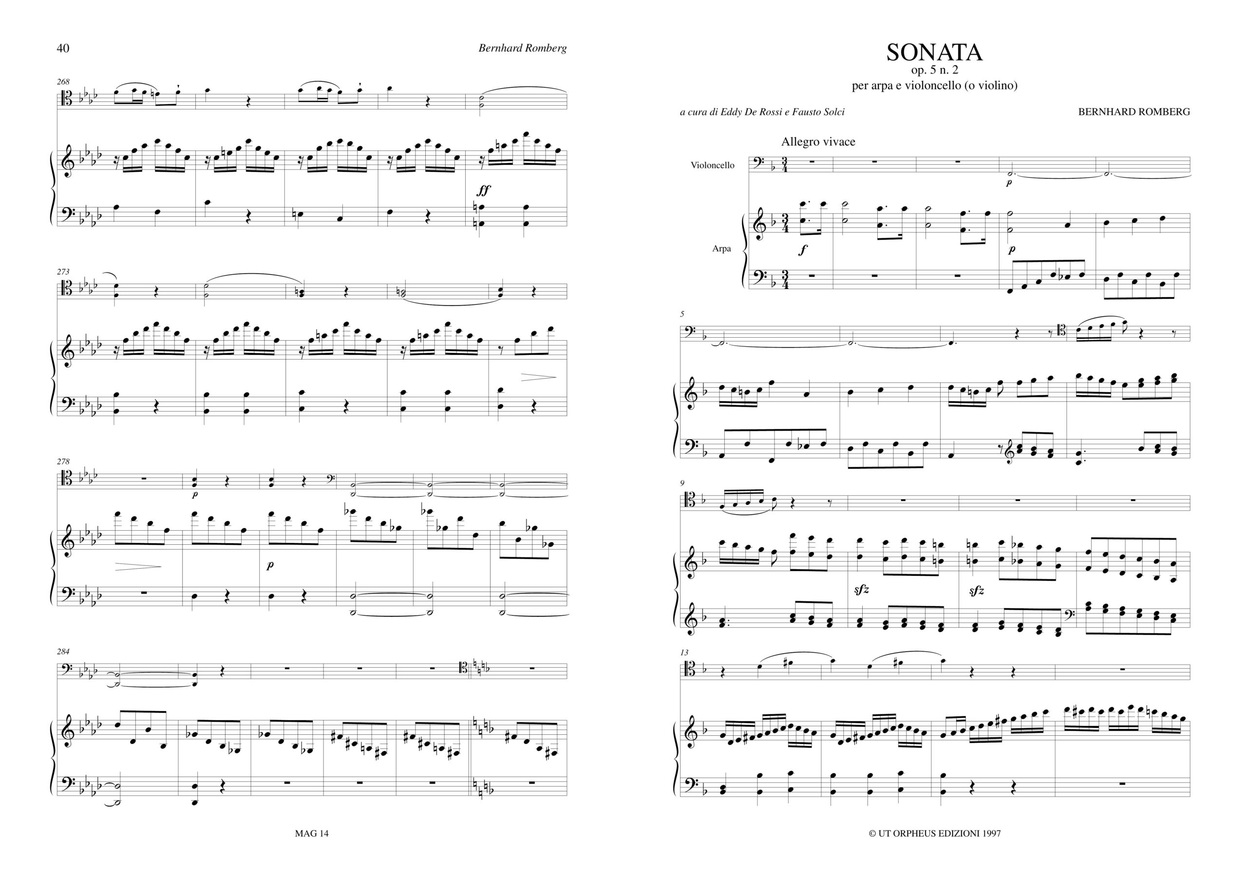 Romberg, Bernhard: Sonata Op. 5 N. 2 per Arpa e Violoncello (Violino)