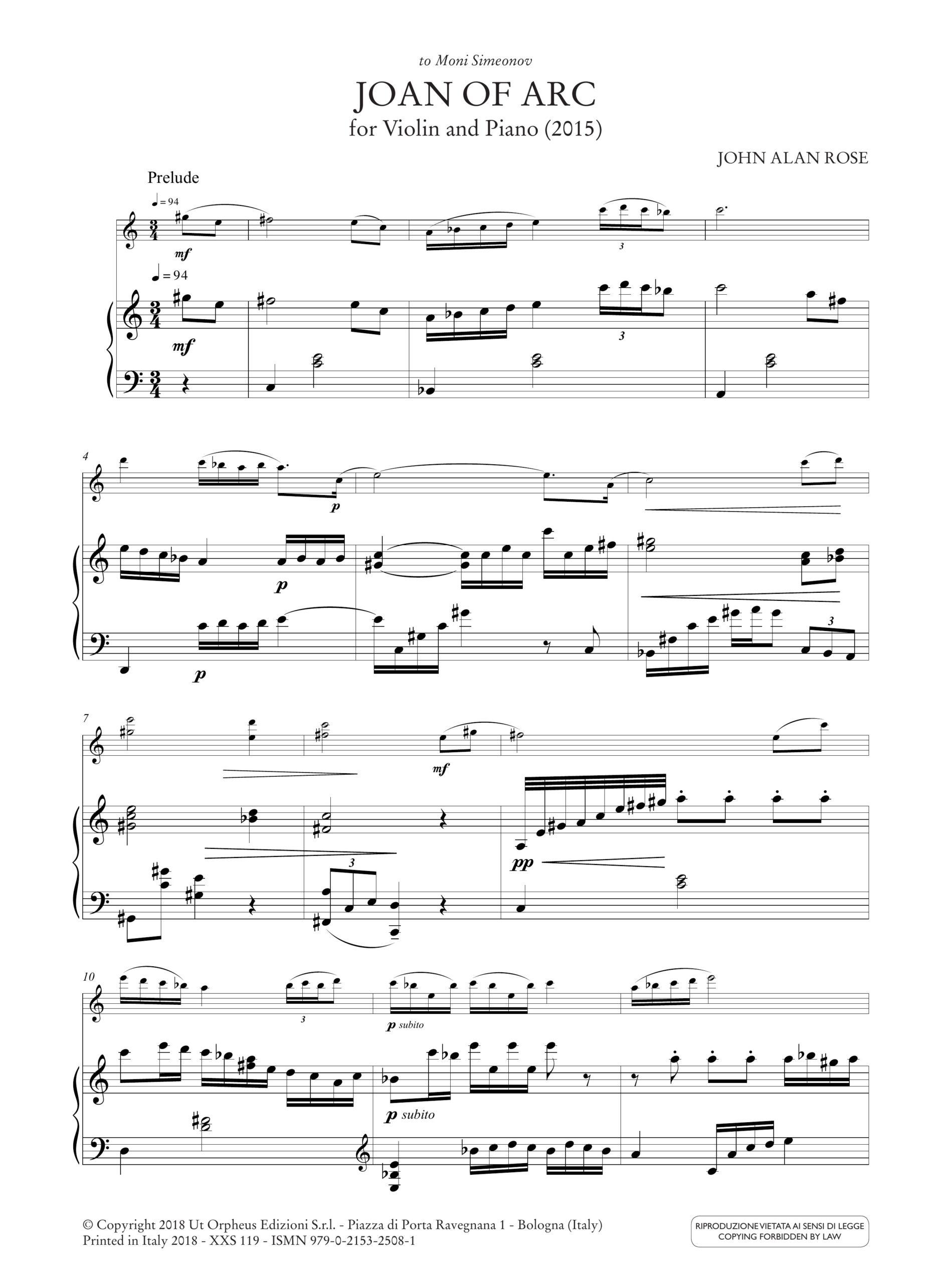 Rose, John Alan: Joan of Arc per Violino e Pianoforte (2015)
