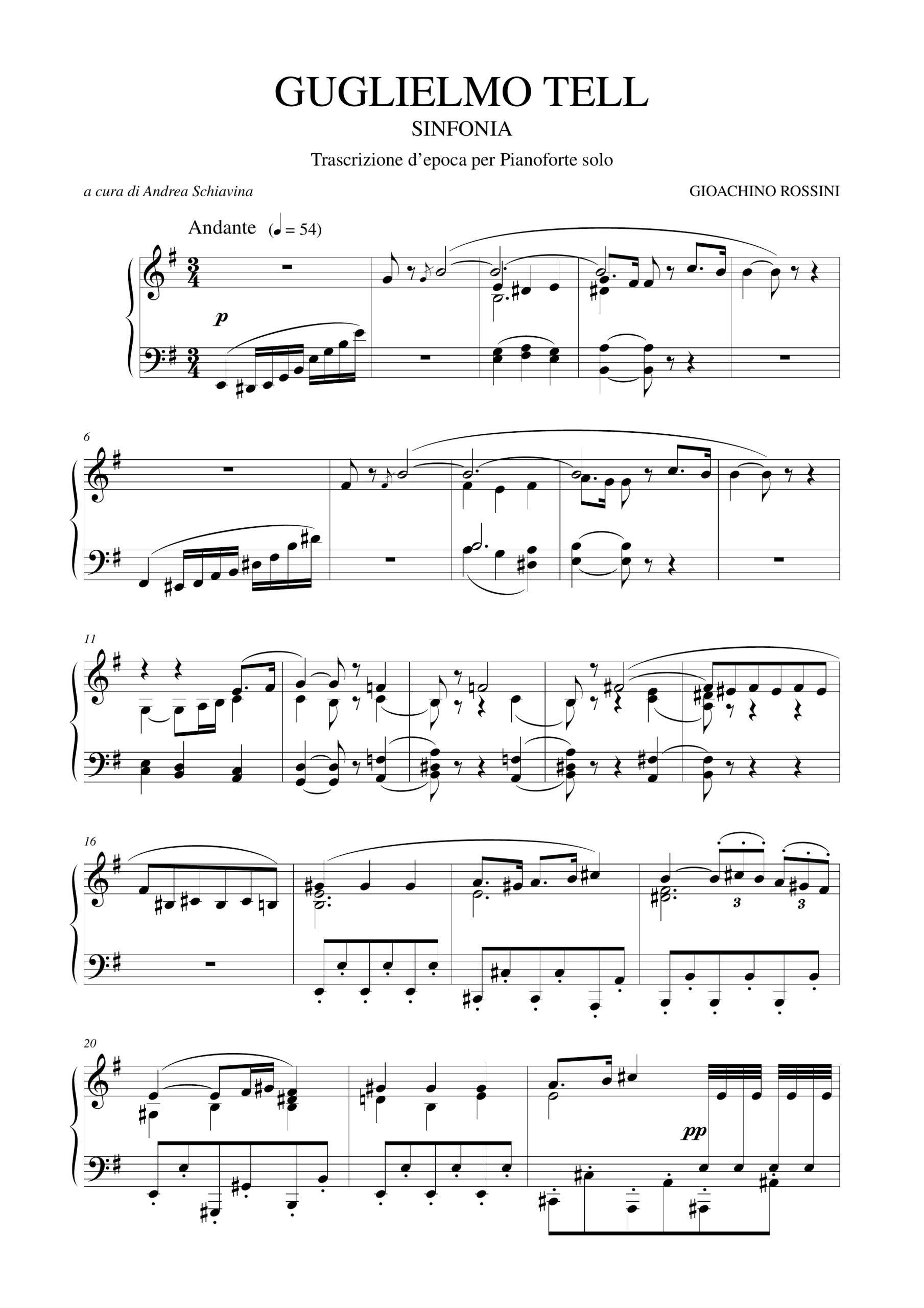 Rossini, Gioachino: Guglielmo Tell. Sinfonia. Trascrizione d’epoca per Pianoforte solo