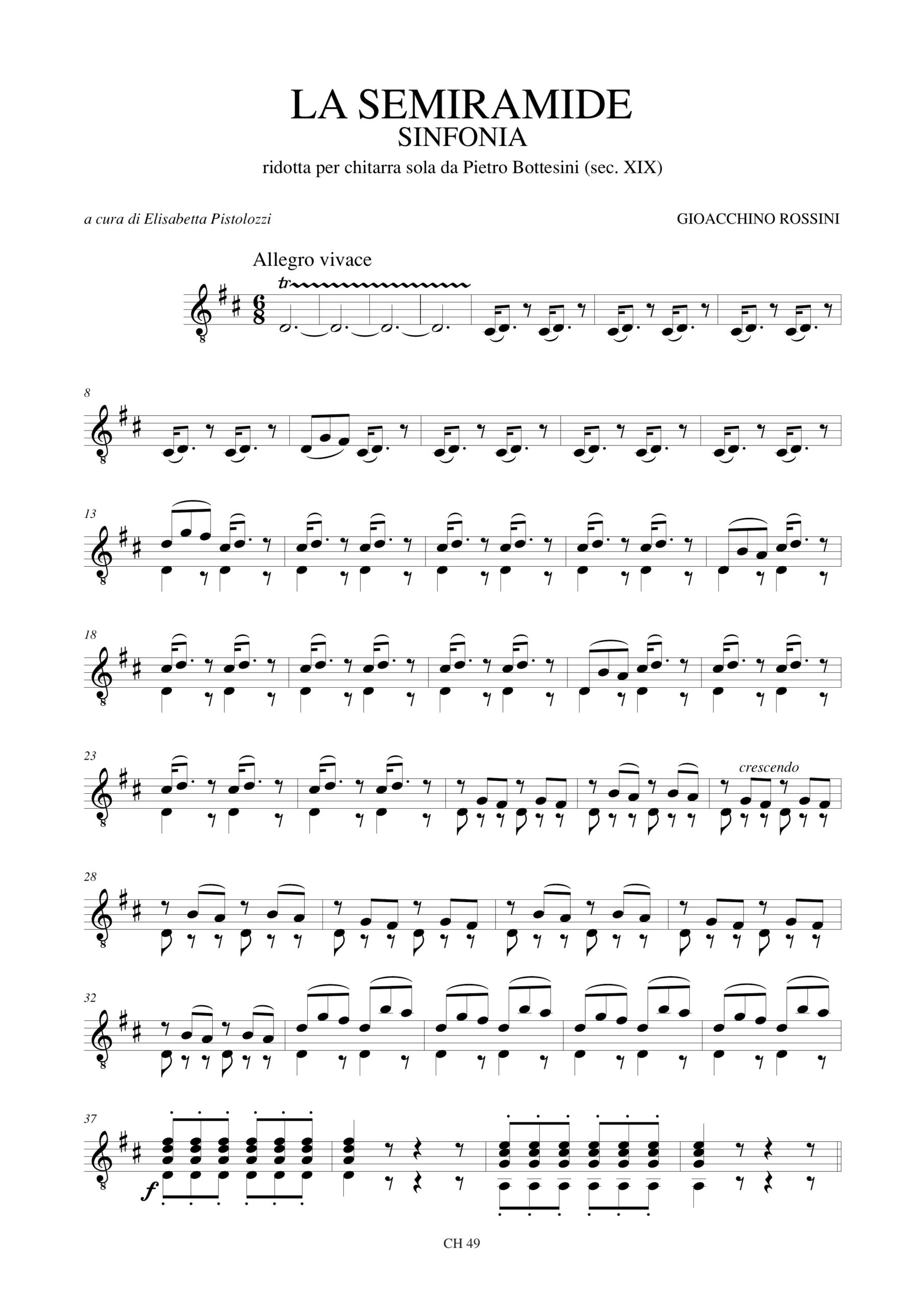 Rossini, Gioachino: La Semiramide. Sinfonia ridotta da Pietro Bottesini (sec. XIX) per Chitarra